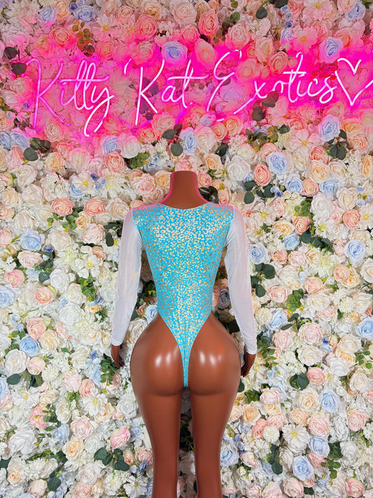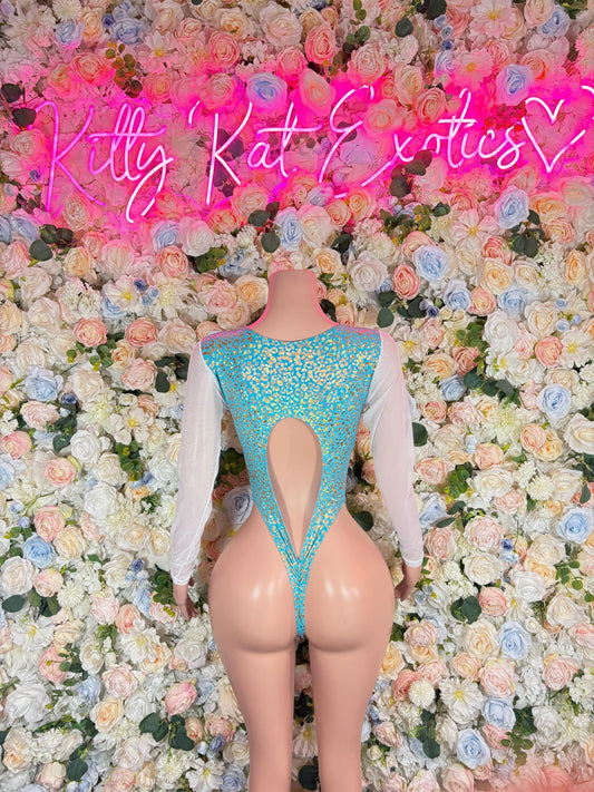 Aqua Cheetah Bodysuit Bottle Girl Outfit, Bartender Uniform, Rave Festival Wear, Exotic Dancewear, Clubwear Costume, Waitress Set