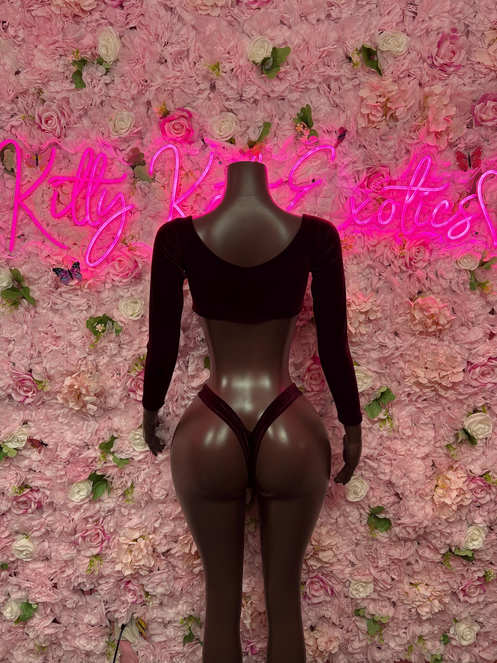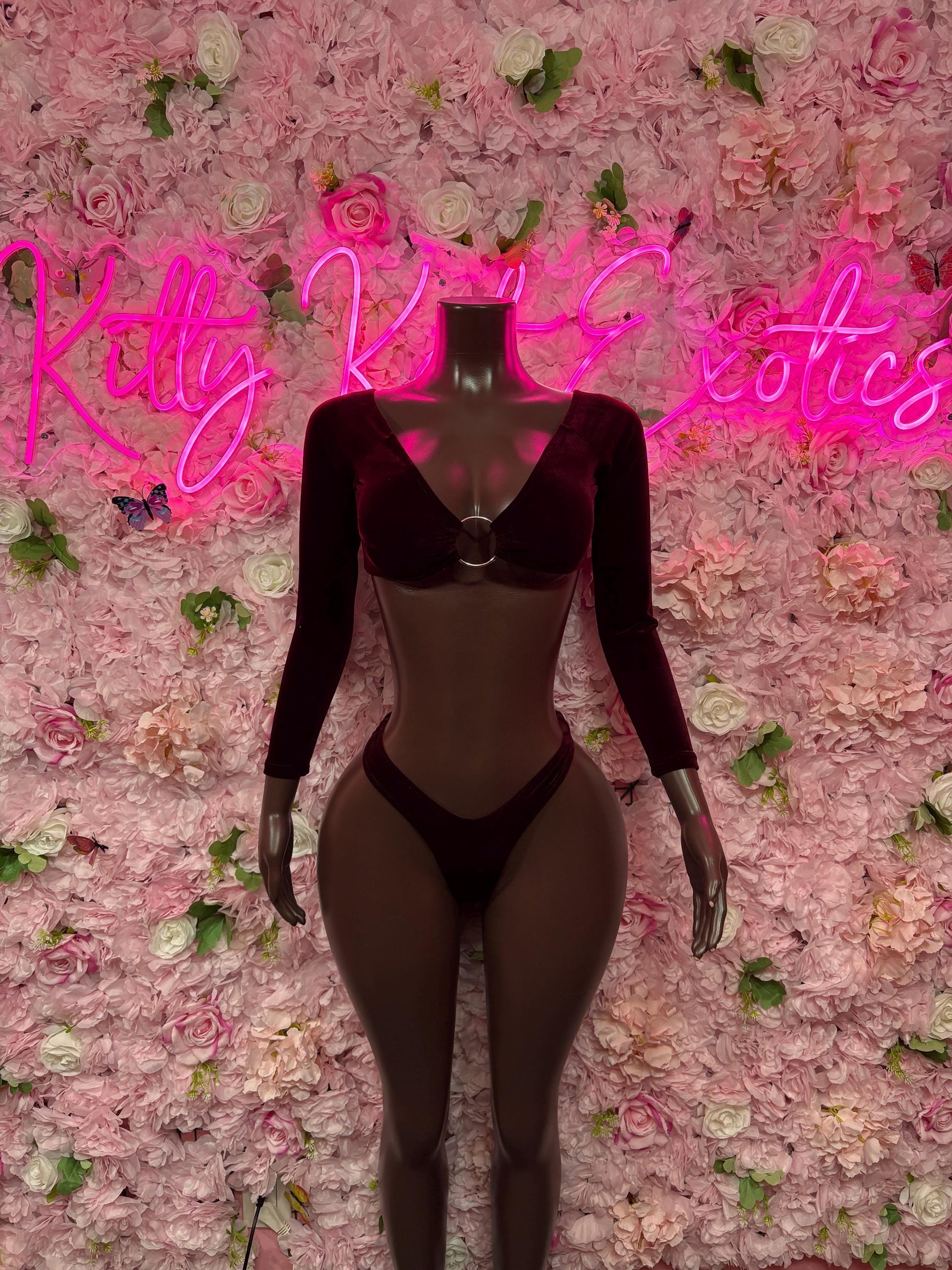 Two Piece Burgundy Velvet - Exotic Dancewear Elegant and Sexy Evening Dress for Performers, Events, or Special Occasions