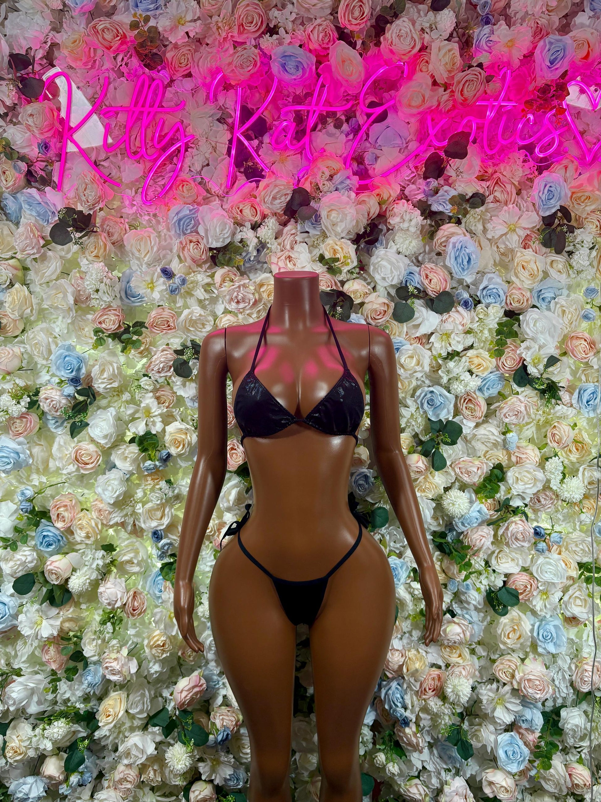 Bikini Set Two Piece Black Metallic Dancewear Festival wear Rave Outfit