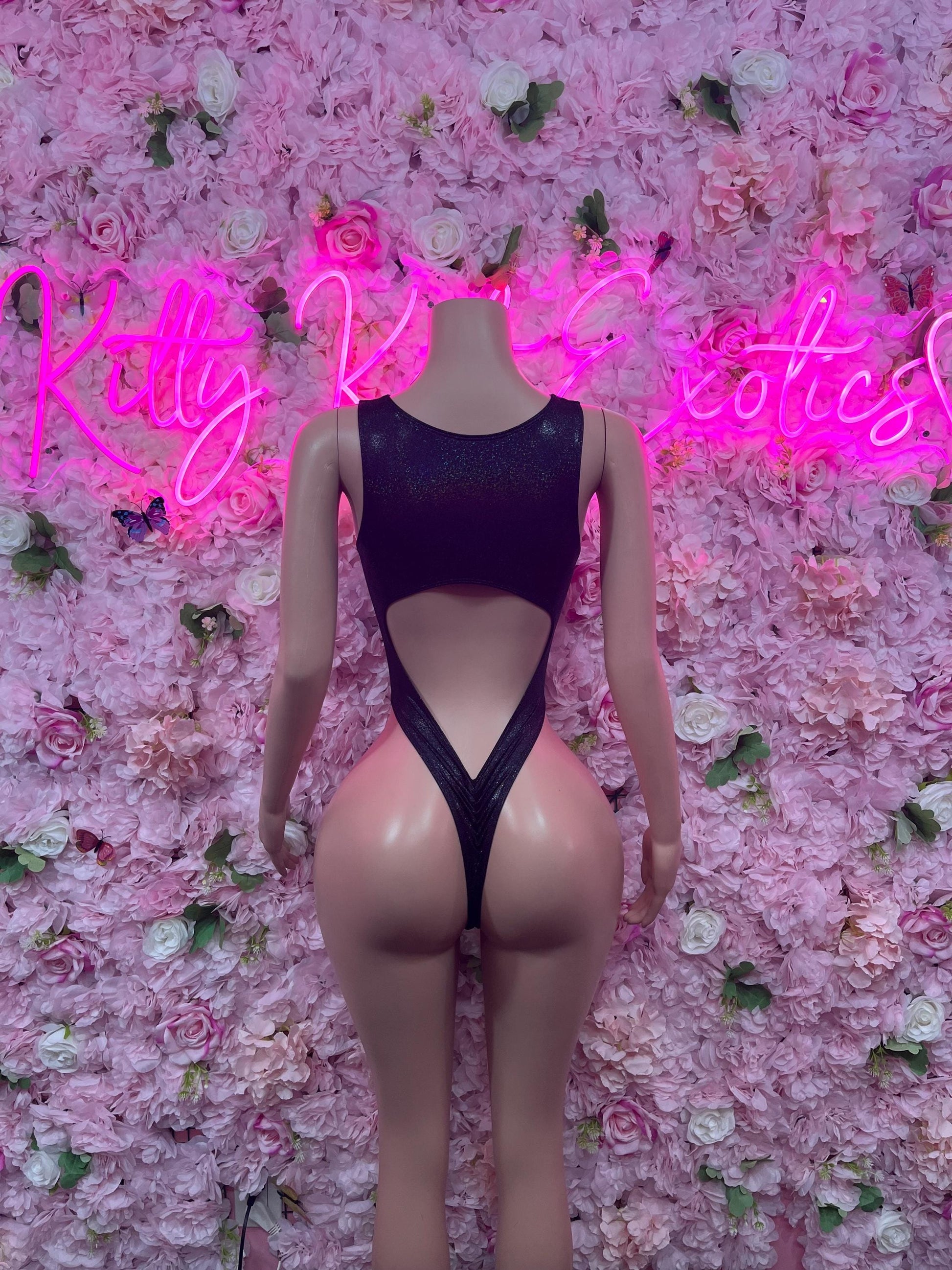 Body suit Bottle Girl One-Piece Bodysuit - Black Metallic Design | Exotic Dancewear for Performers, Raves, & Nights Out