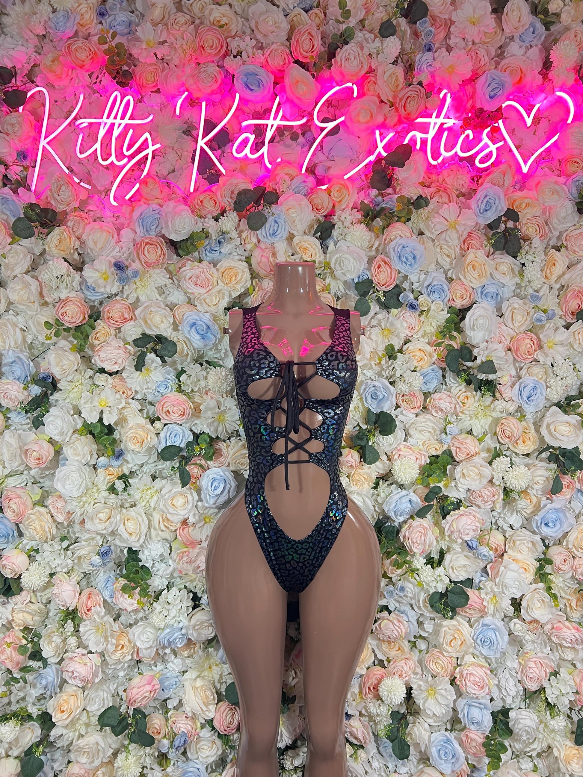 Bottle Girl One-Piece Bodysuit - Onyx Metallic Cheetah | Exotic Dancewear, Rave & Festival Outfit