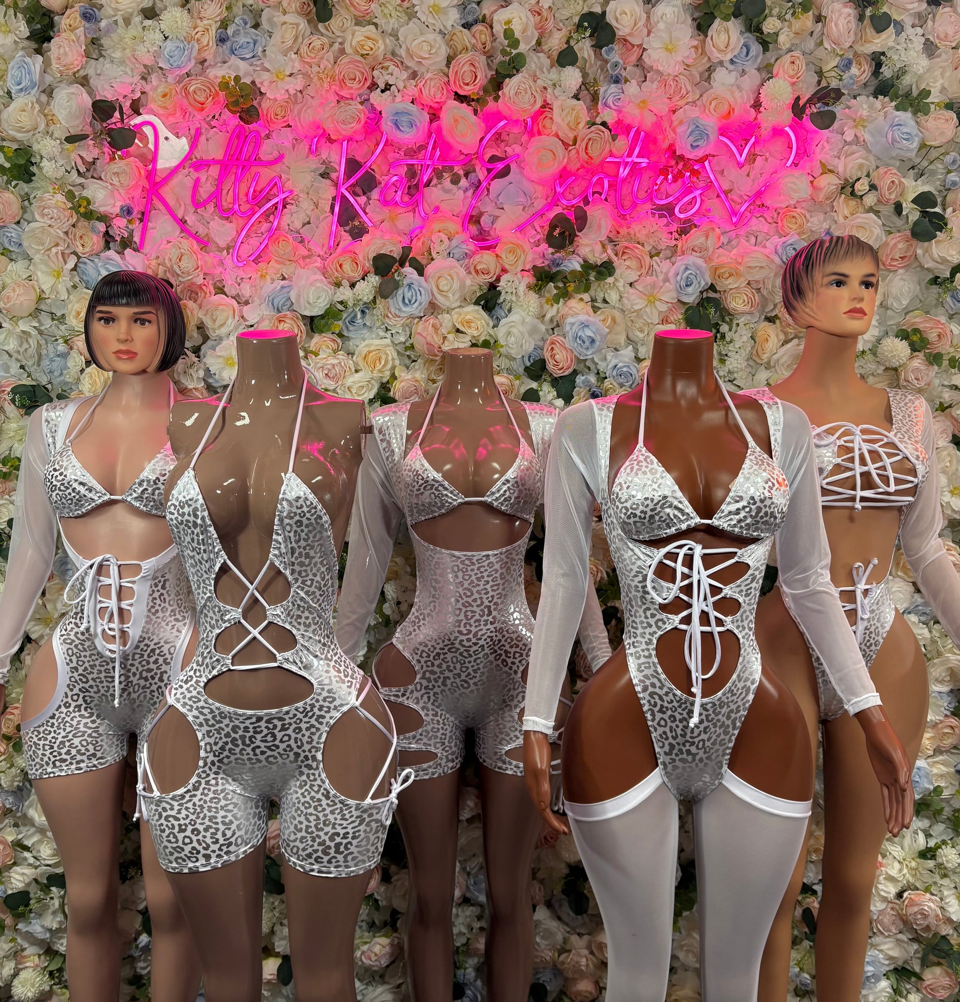 Bottlegirl Bodysuit Silver Cheetah One Piece - Hologram Design | Exotic Dancewear for Performers, Raves