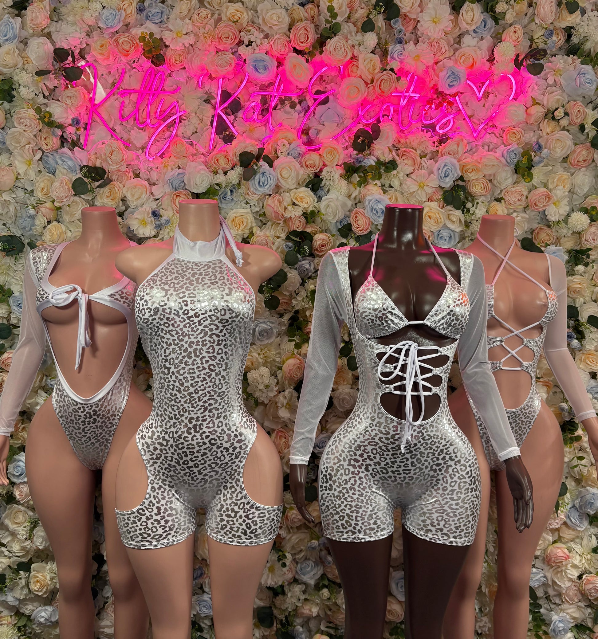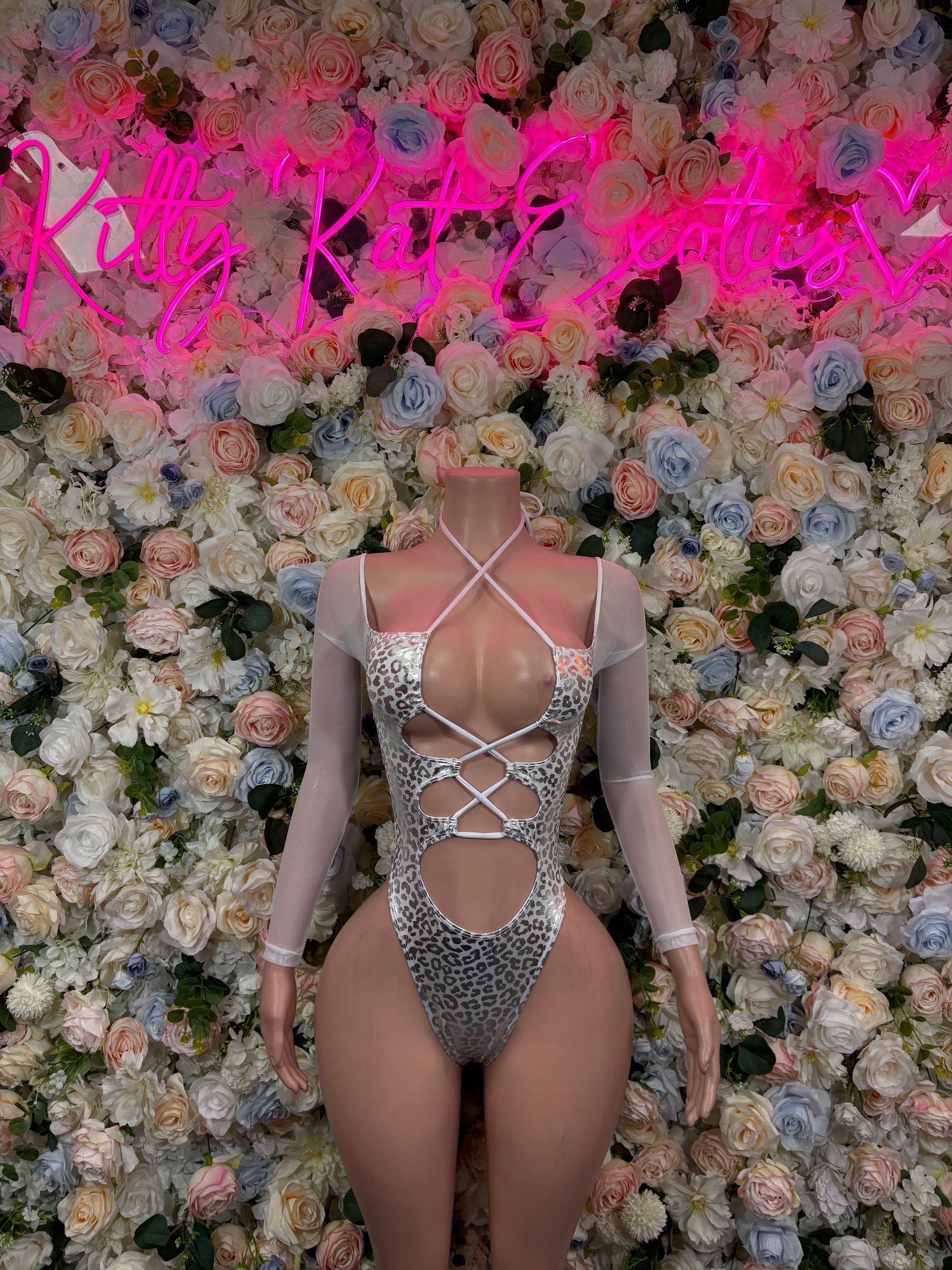 Bottlegirl Bodysuit Silver Cheetah One Piece - Hologram Design | Exotic Dancewear for Performers, Raves