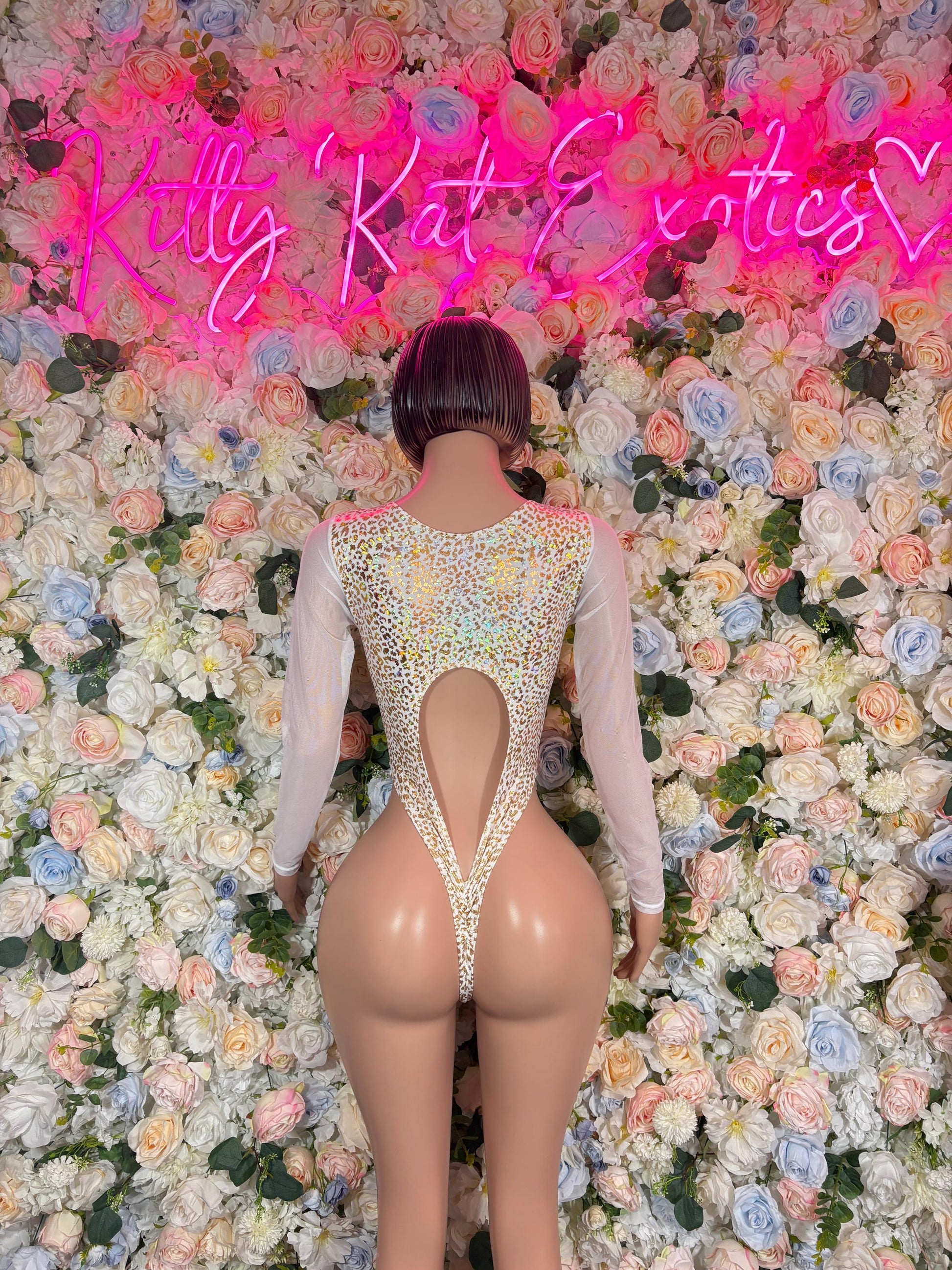 Bottlegirl Bodysuit - White gold Cheetah Design | Exotic Dancewear for Performers, Rave Outfits