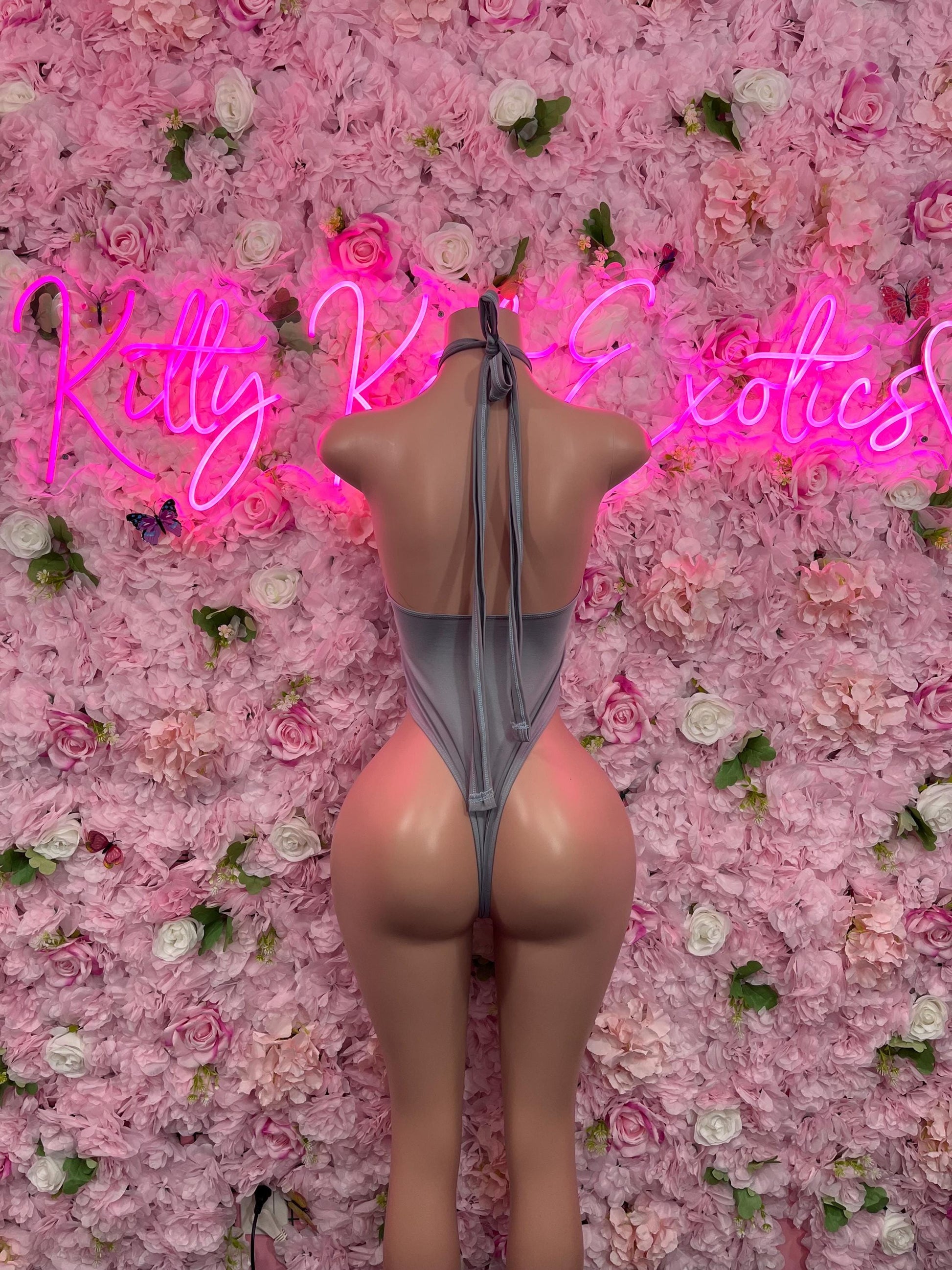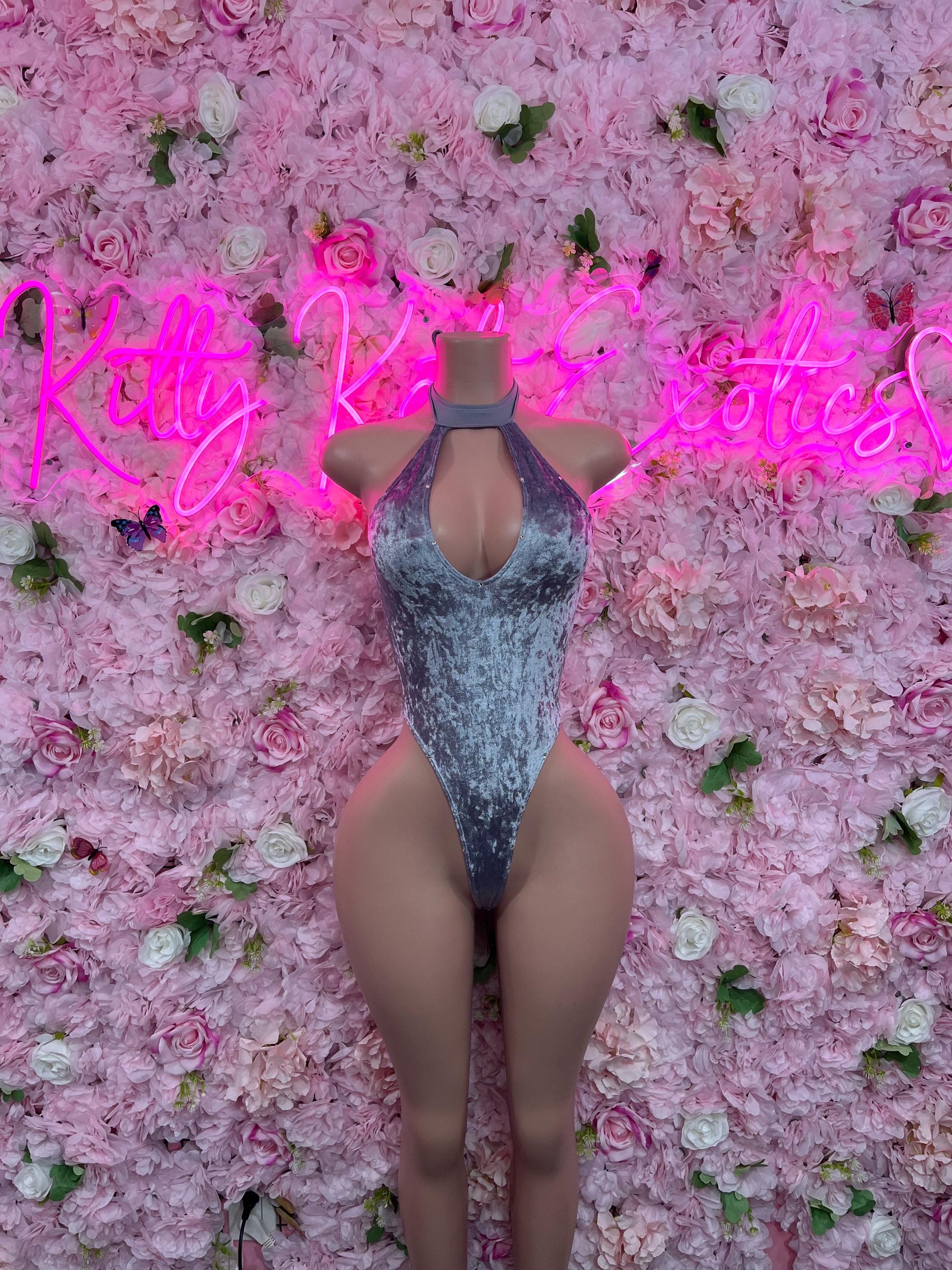 Bottlegirl Exotic Dancewear One Piece Silver Velvet Bodysuit Ravewear Bottlegirl Bartender Outfit