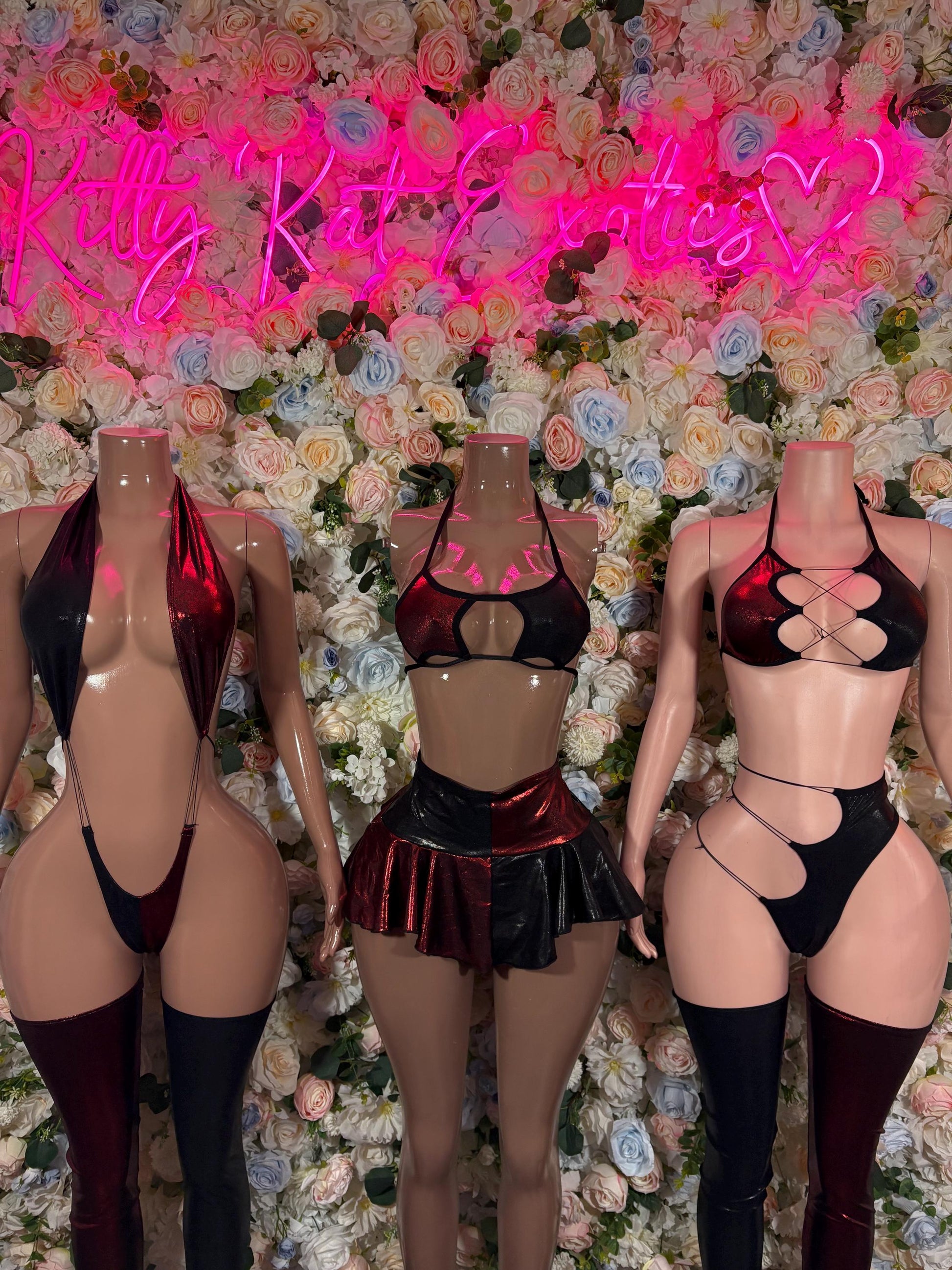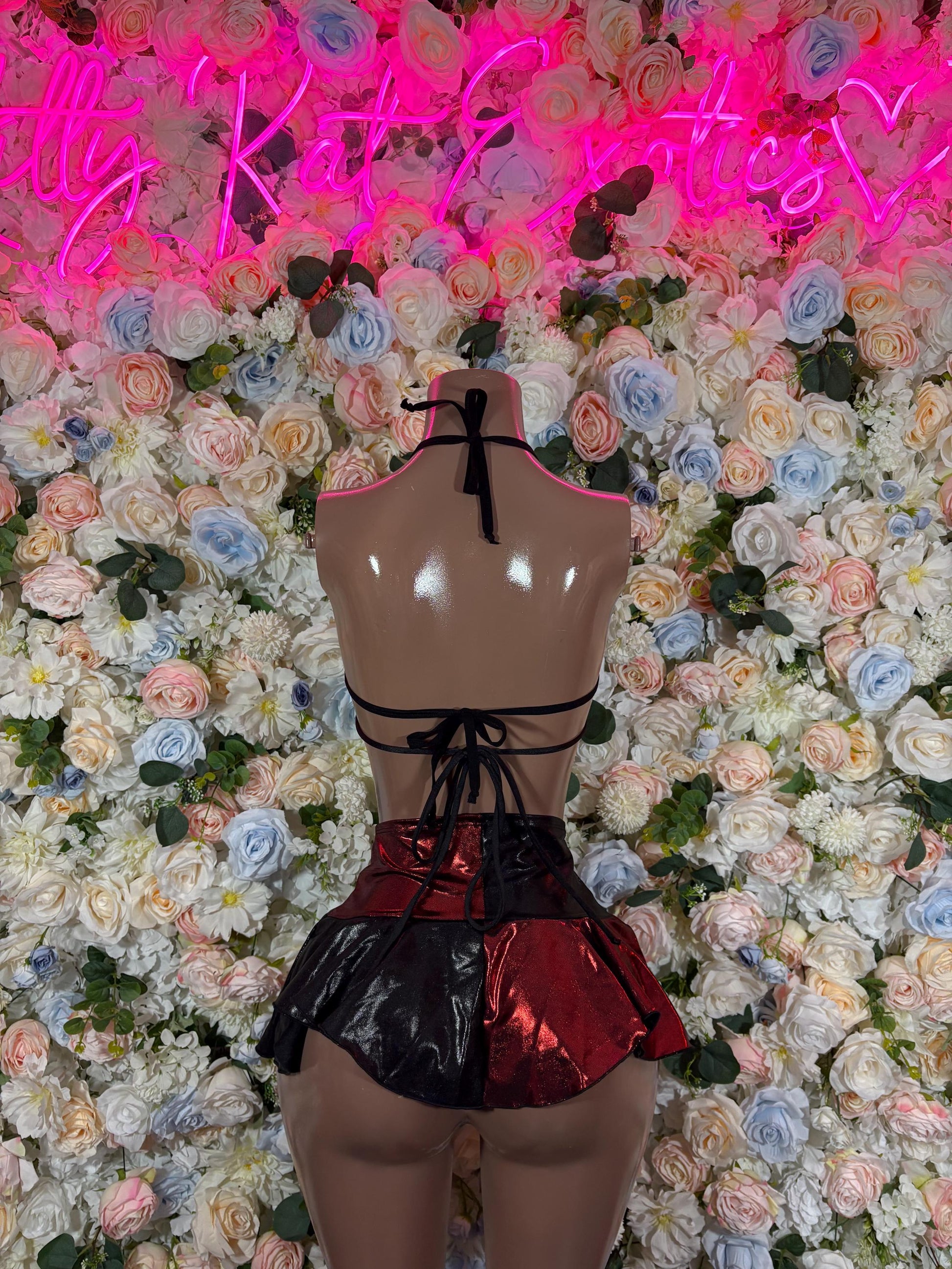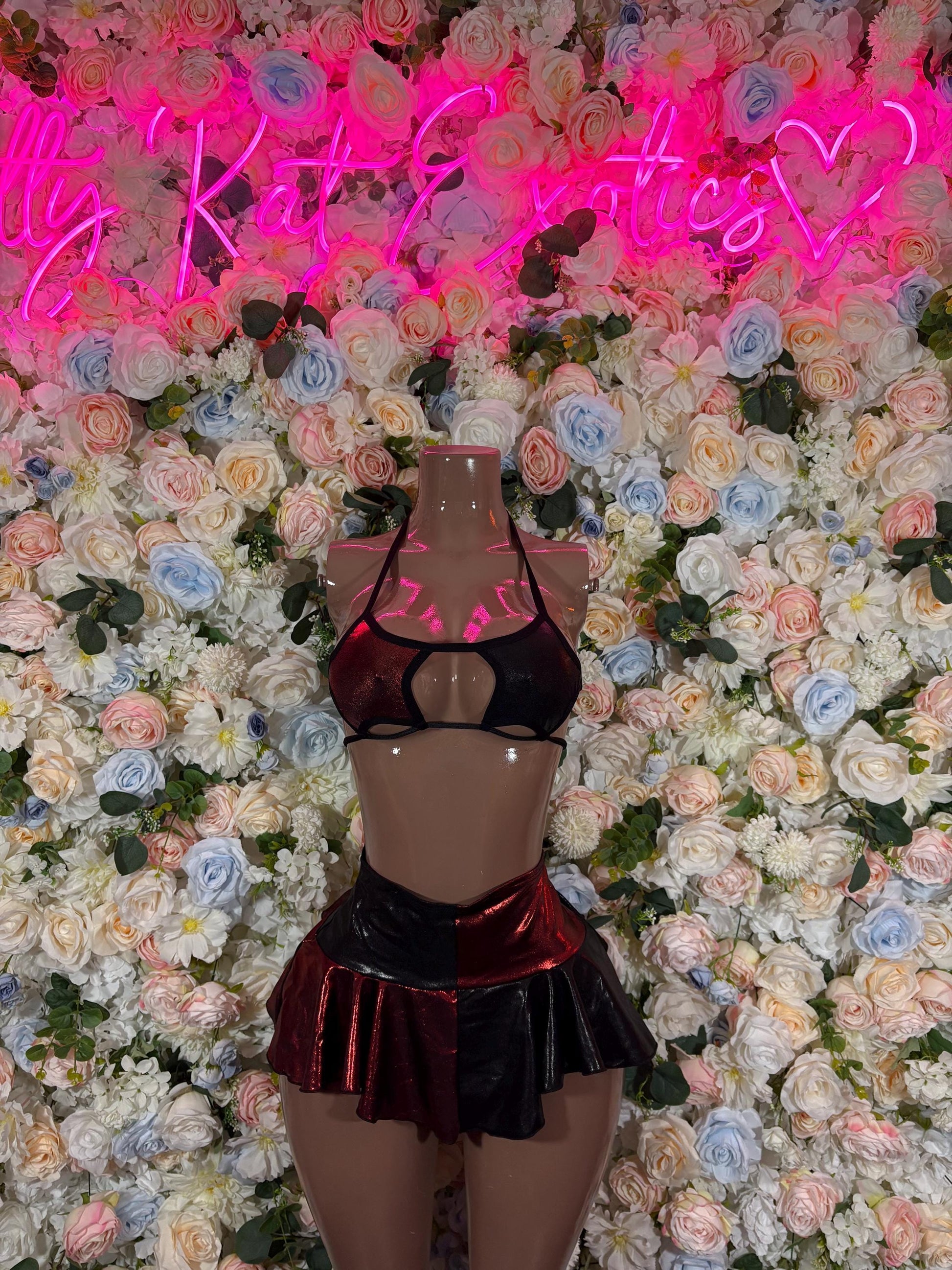 Bottlegirl Harley Quinn Two Piece Skirt Set Costume With Women’s Rave Outfit, Bottle Girl Bartender Cosplay