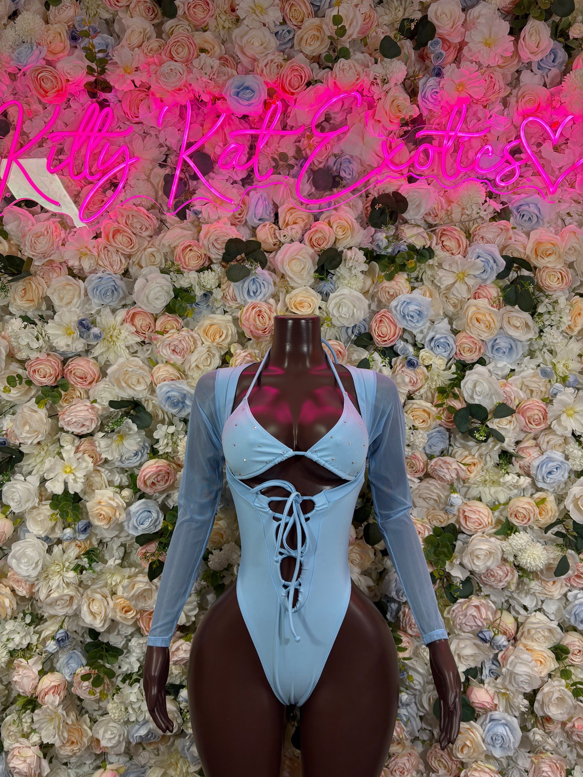 Bottlegirl One-Piece Bodysuit Baby Blue - Custom Design | Exotic Dancewear for Performers, Raves, & Nights Out