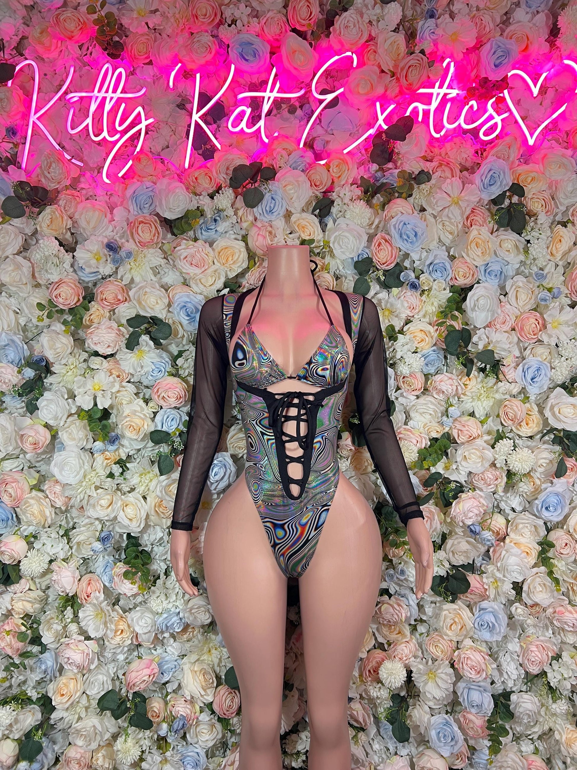 Bottlegirl One Piece Bodysuit Metallic Illusion - Sexy Performance Costume, Exotic Dancewear, Bold Dance Outfit, Womens Party Outfit