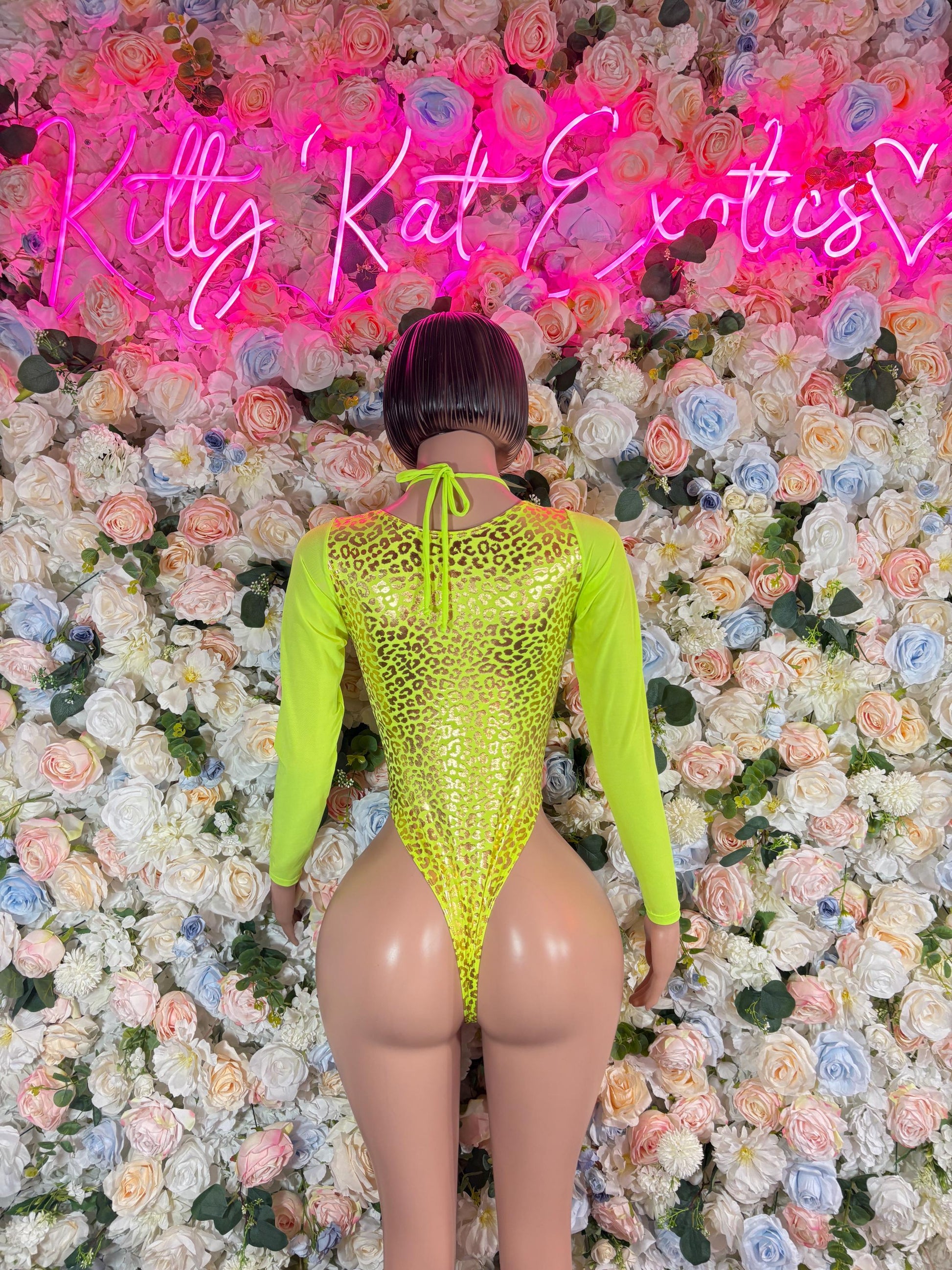 Bottlegirl Outfit One-Piece Bodysuit - Neon Metallic Cheetah Print | Exotic Dancewear for Performers, Raves, & Festival Clothing