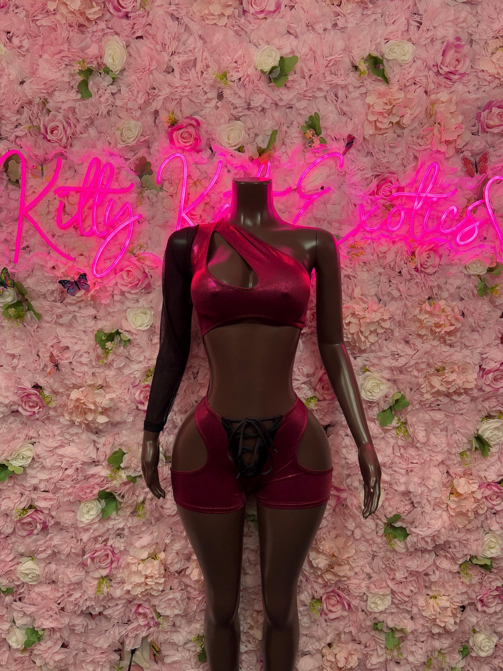 Bottlegirl Outfit One Piece Burgundy Bodysuit - Exotic Dancewear, Bartender Sexy for Performers, Events, or Special Occasions