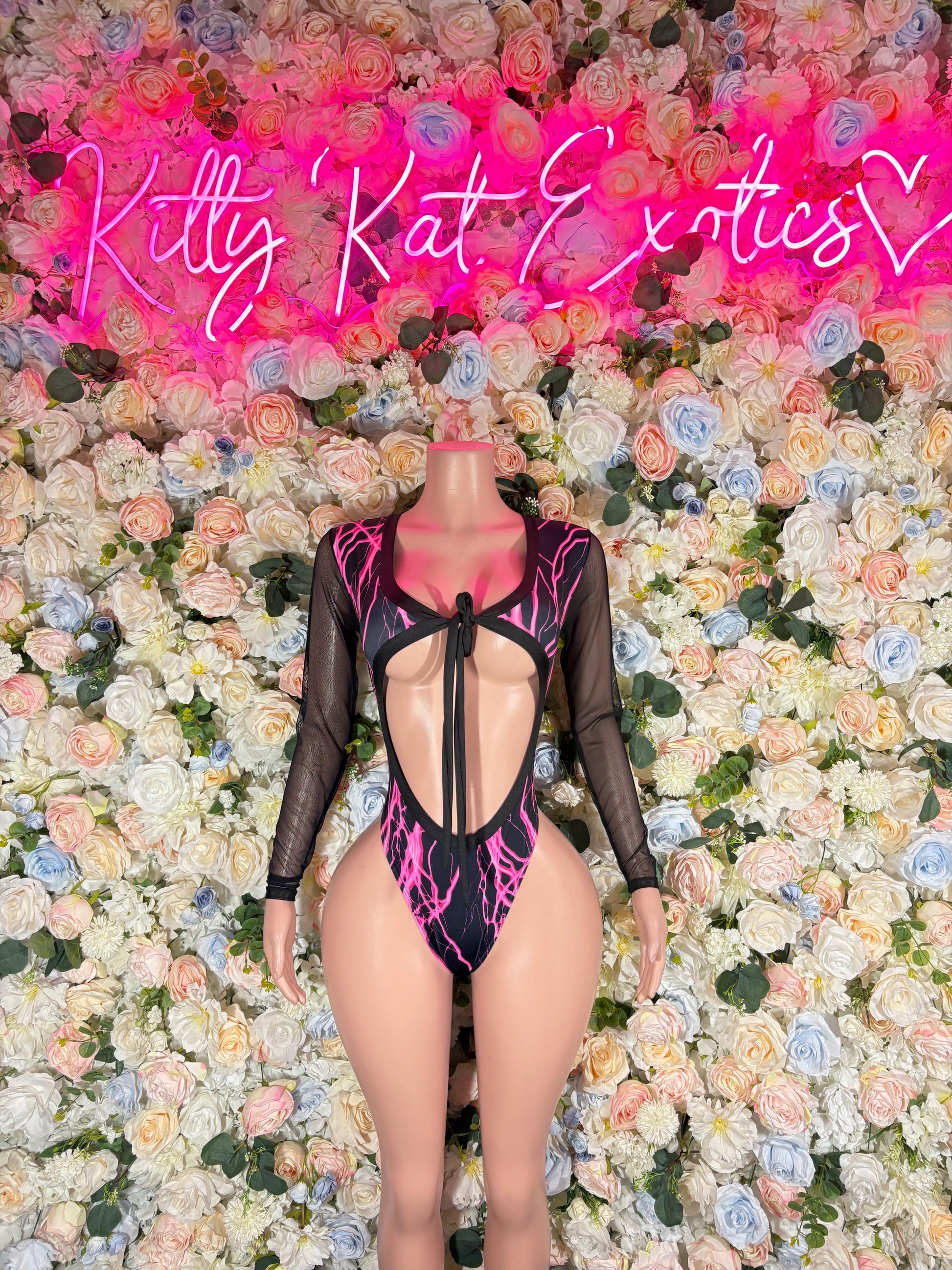 Bottlegirl Outfits One-Piece Bodysuit Pink Lightening - Custom Design | Exotic Dancewear for Performers, Raves, & Nights Out