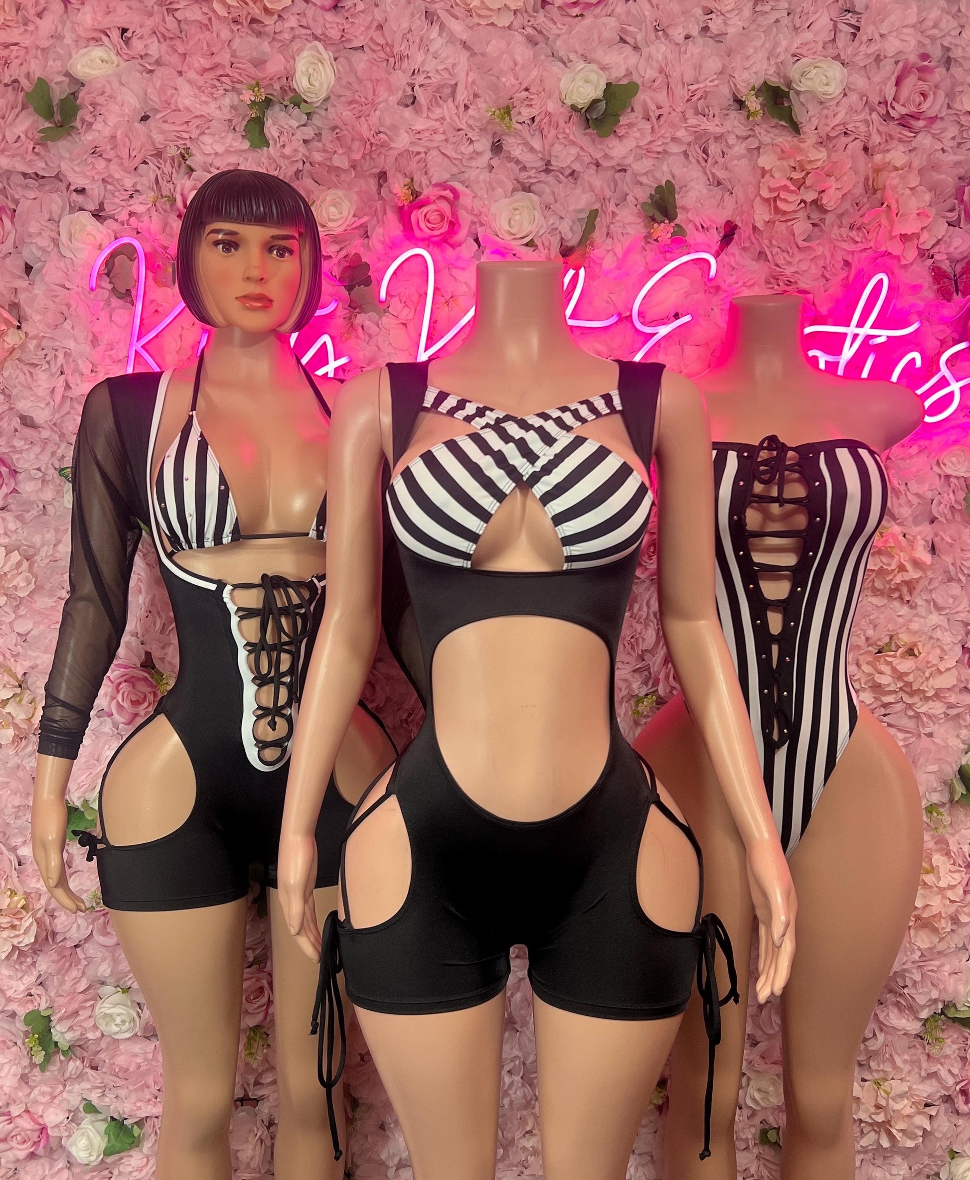 Bottlegirl Referee Costume Set - One-Piece Sports Bodysuit for Halloween, Game Day, Clubwear, Sports Bar, Roleplay & Festivals