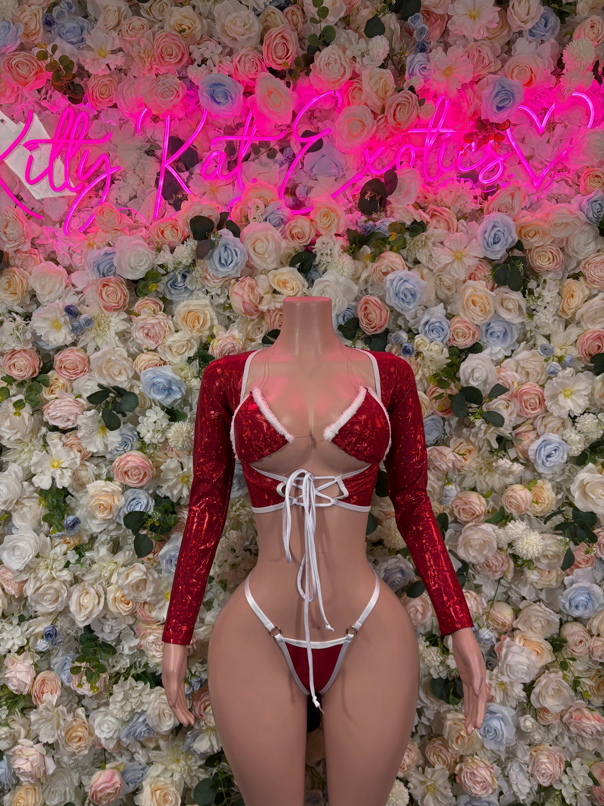 Christmas Bartender Outfit Sexy Two Piece Bikini Red Santa Exotic Dancewear Costume Holiday