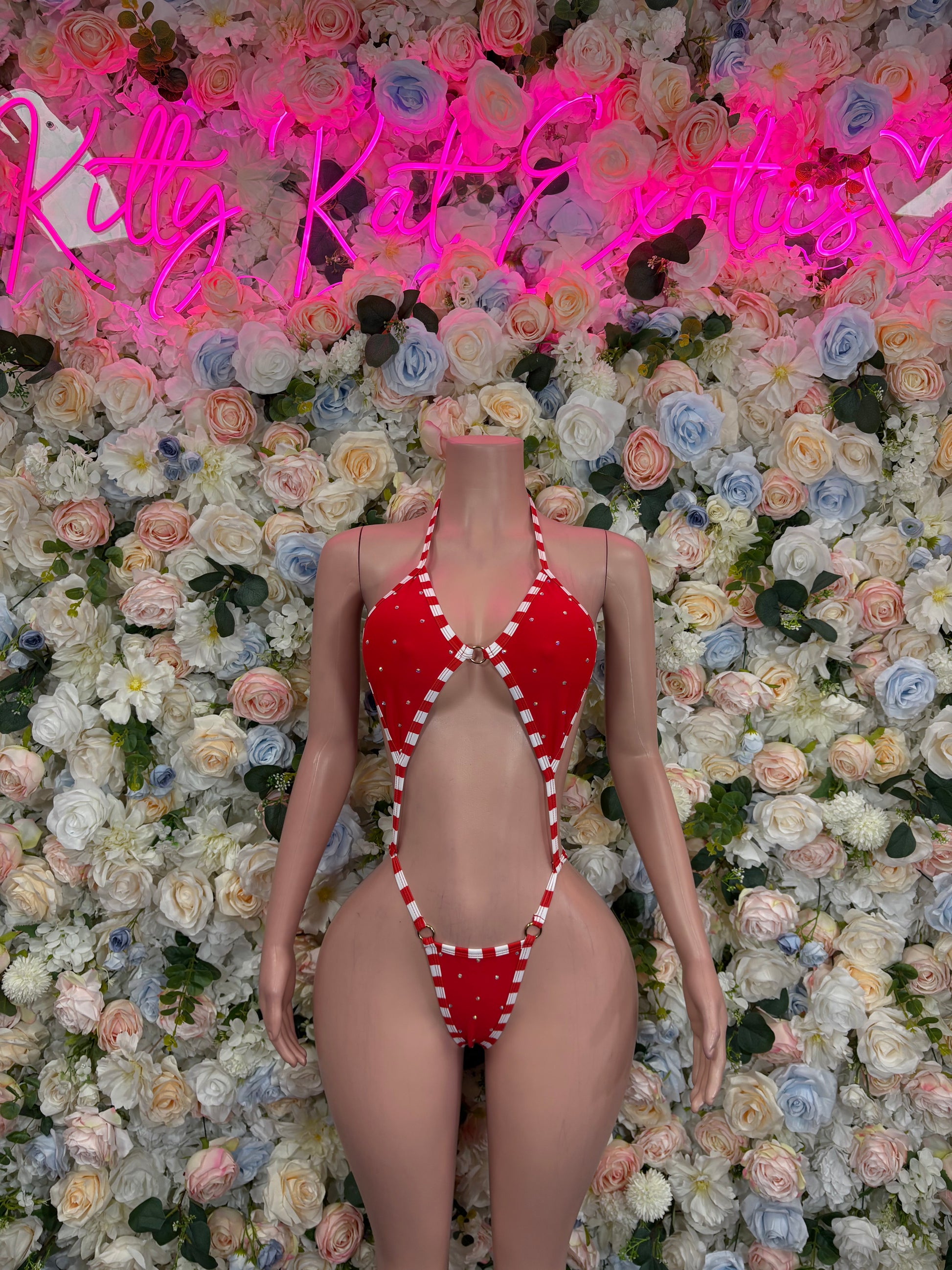 Christmas Costume One Piece Slingshot Outfit – Holiday Bartender Dancewear Set for Holiday Parties