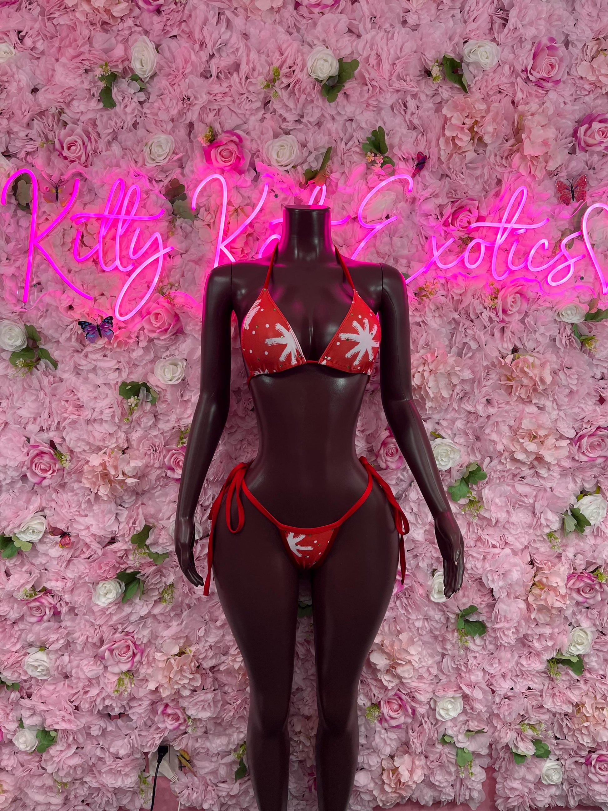 Christmas Exotic Dancewear Two-Piece Bikini Red Dancewear Poledance wear Ravewear