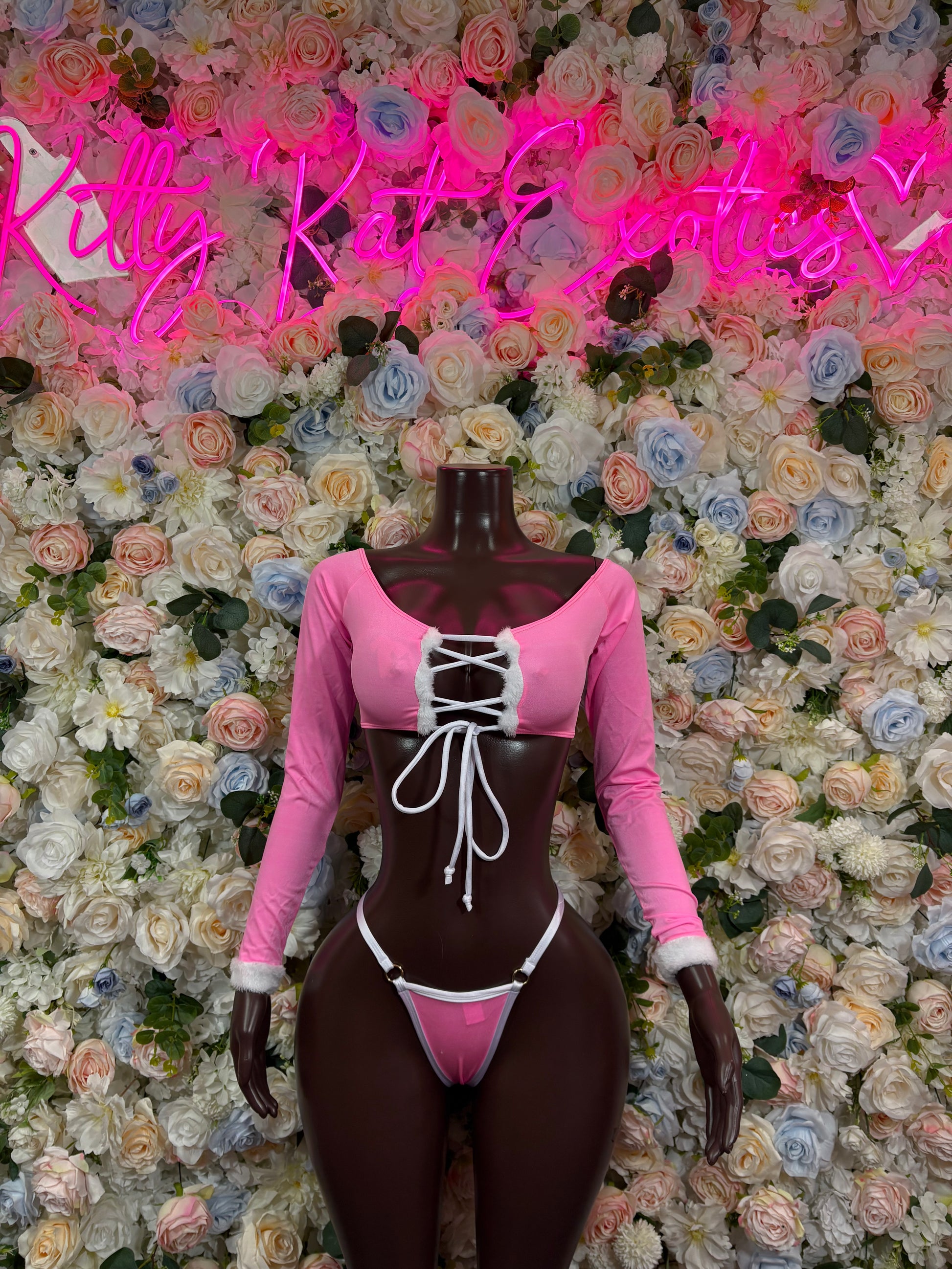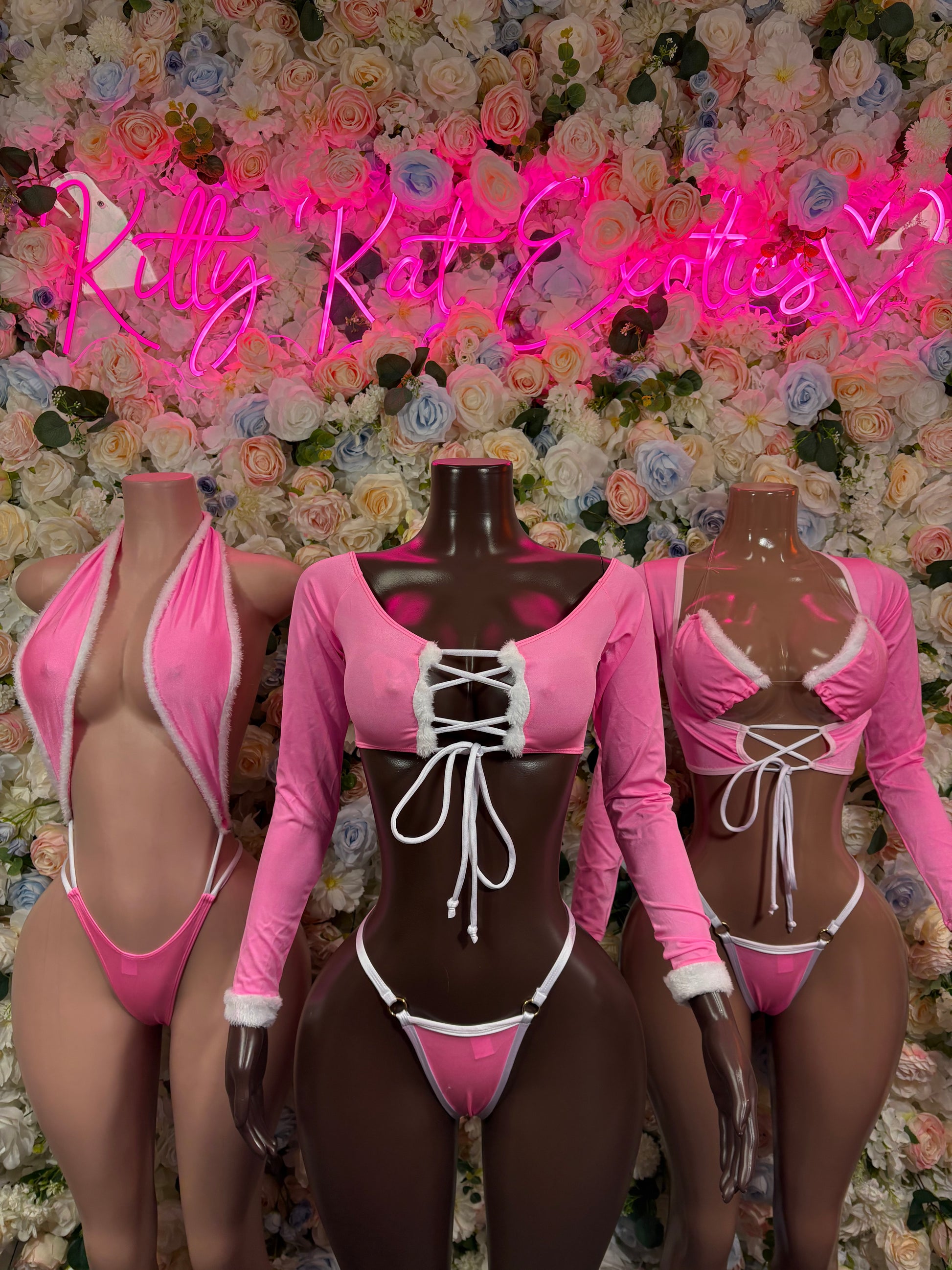 Christmas Pink Santa Holiday Outfit Two Piece Pink Santa Exotic Dancewear Costume Holiday Outfit