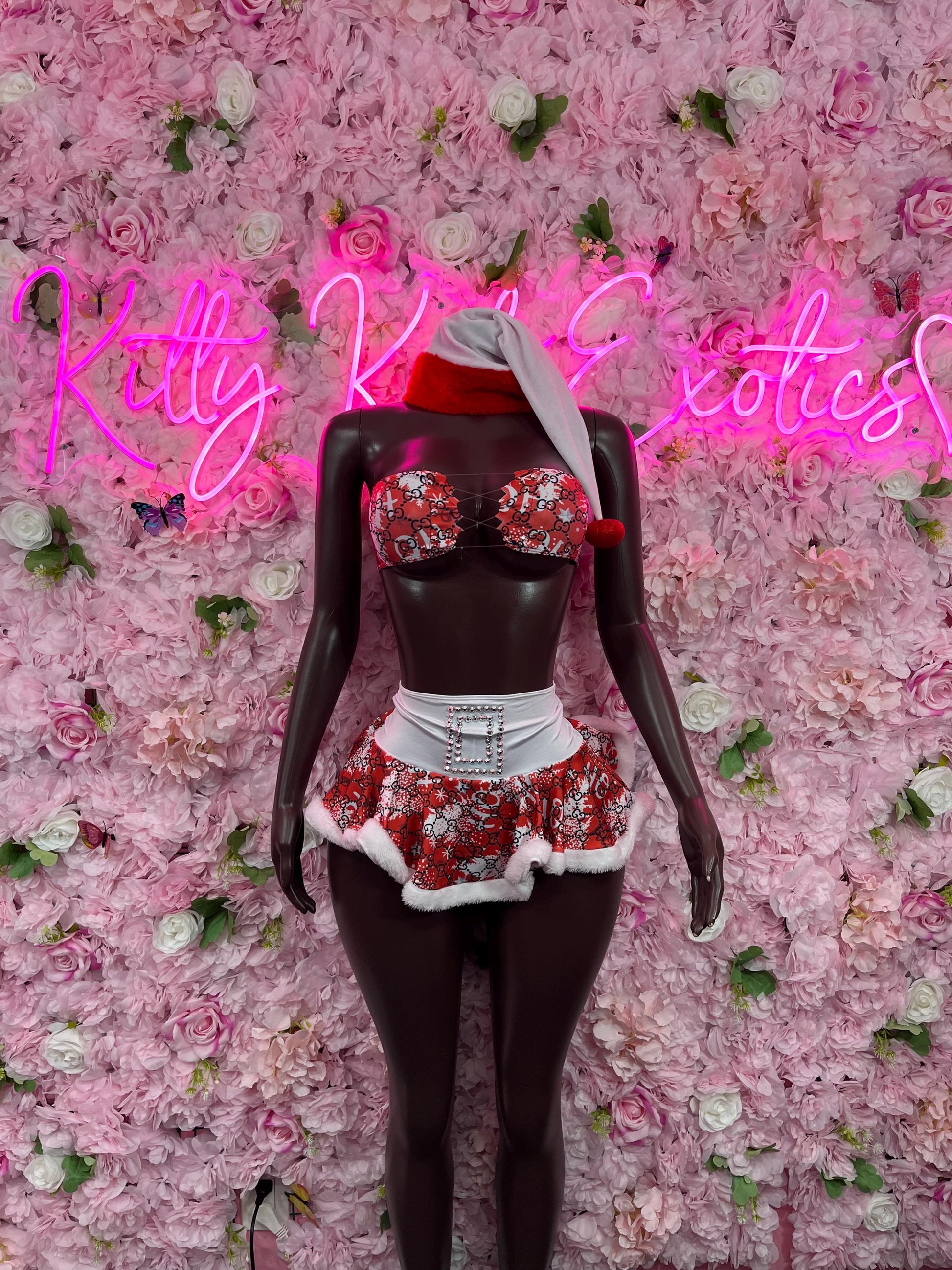 Christmas Sexy Santa Costume - Two Piece Holiday Outfit - Festive Womens Christmas Lingerie - Hat Included