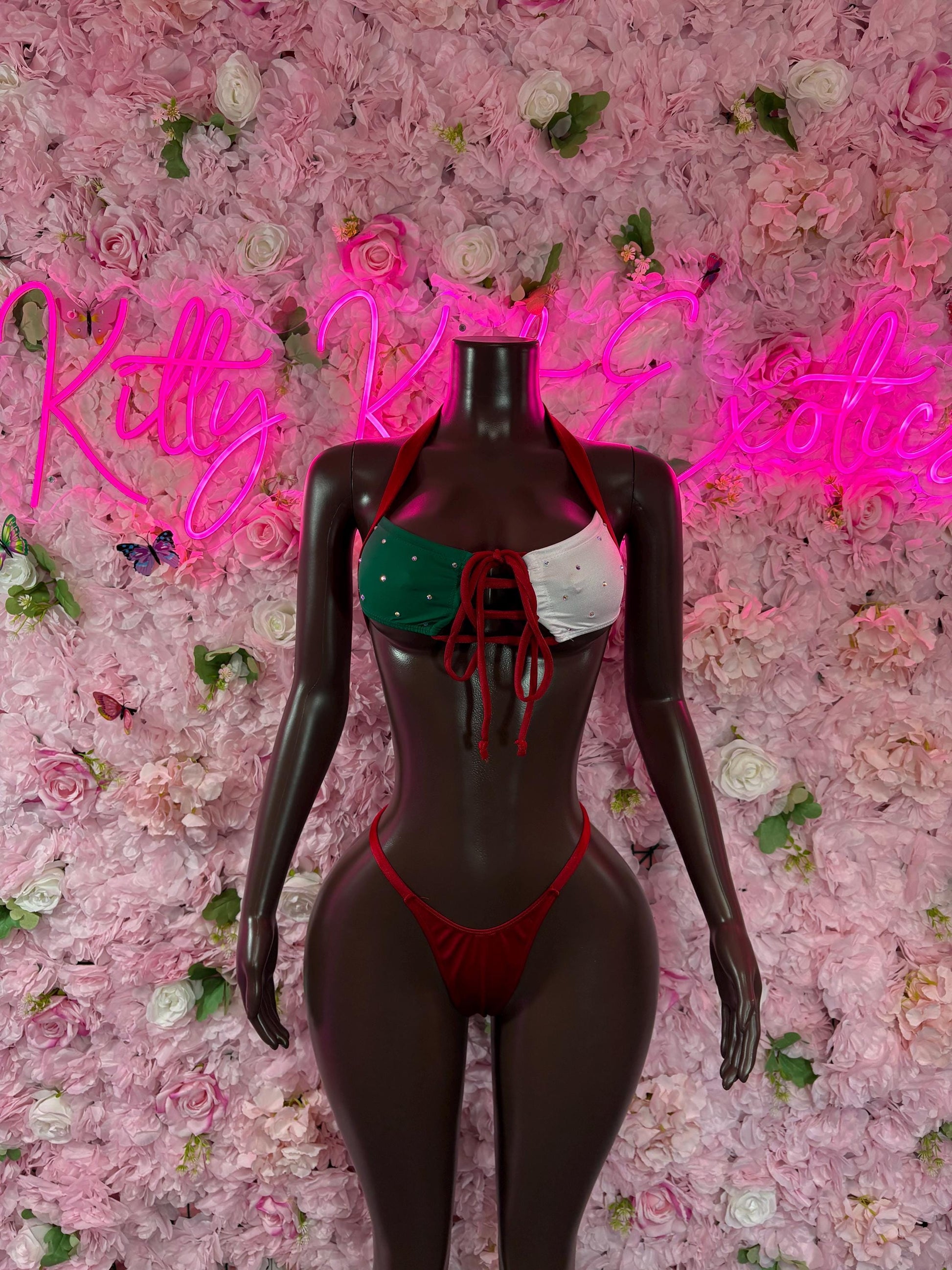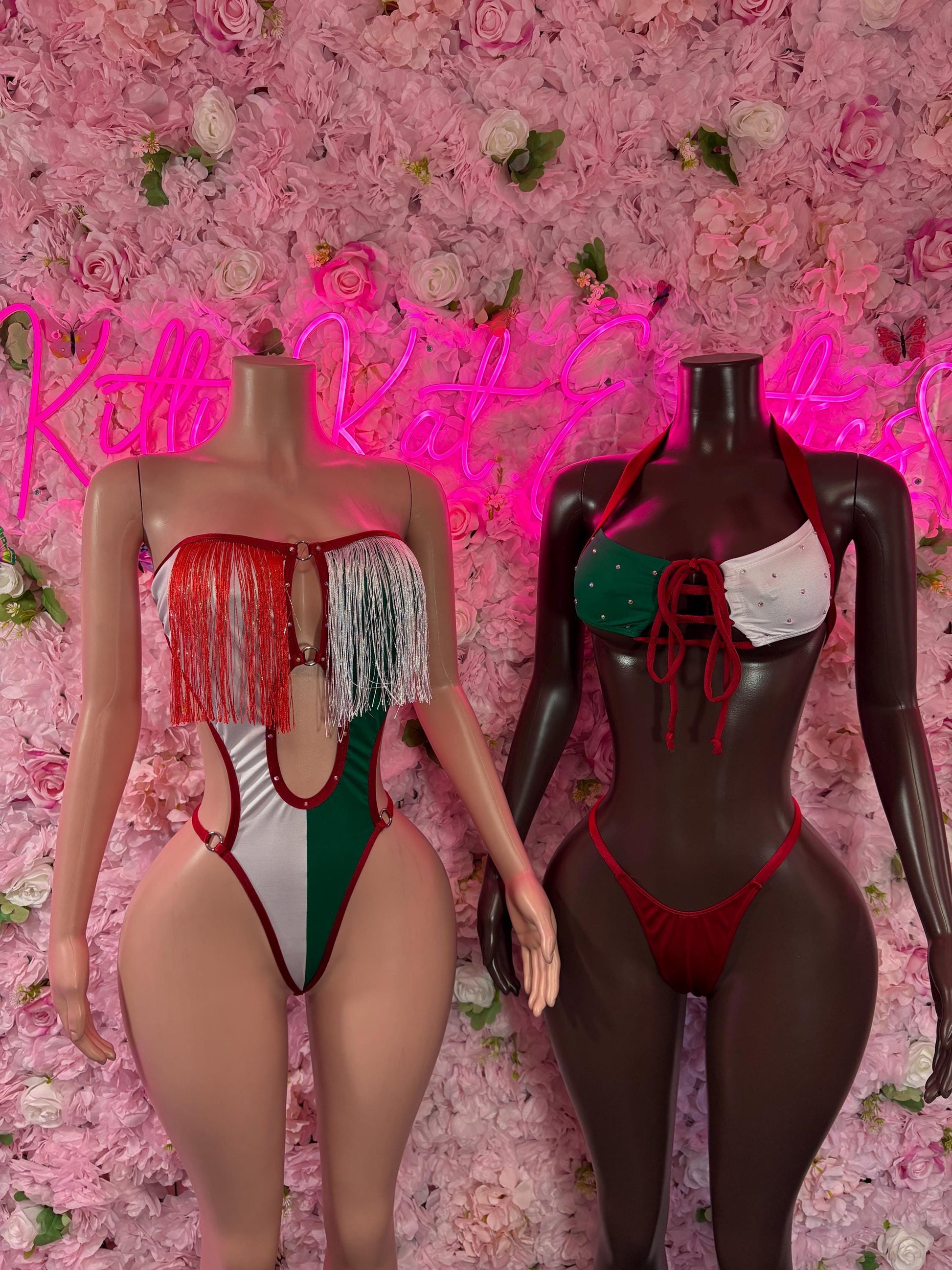 Cinco De Mayo Mexican Flag Festive Two Piece Swimsuit Bikini for Party, Parade, or Beach Mexico Colors Patriotic Festival