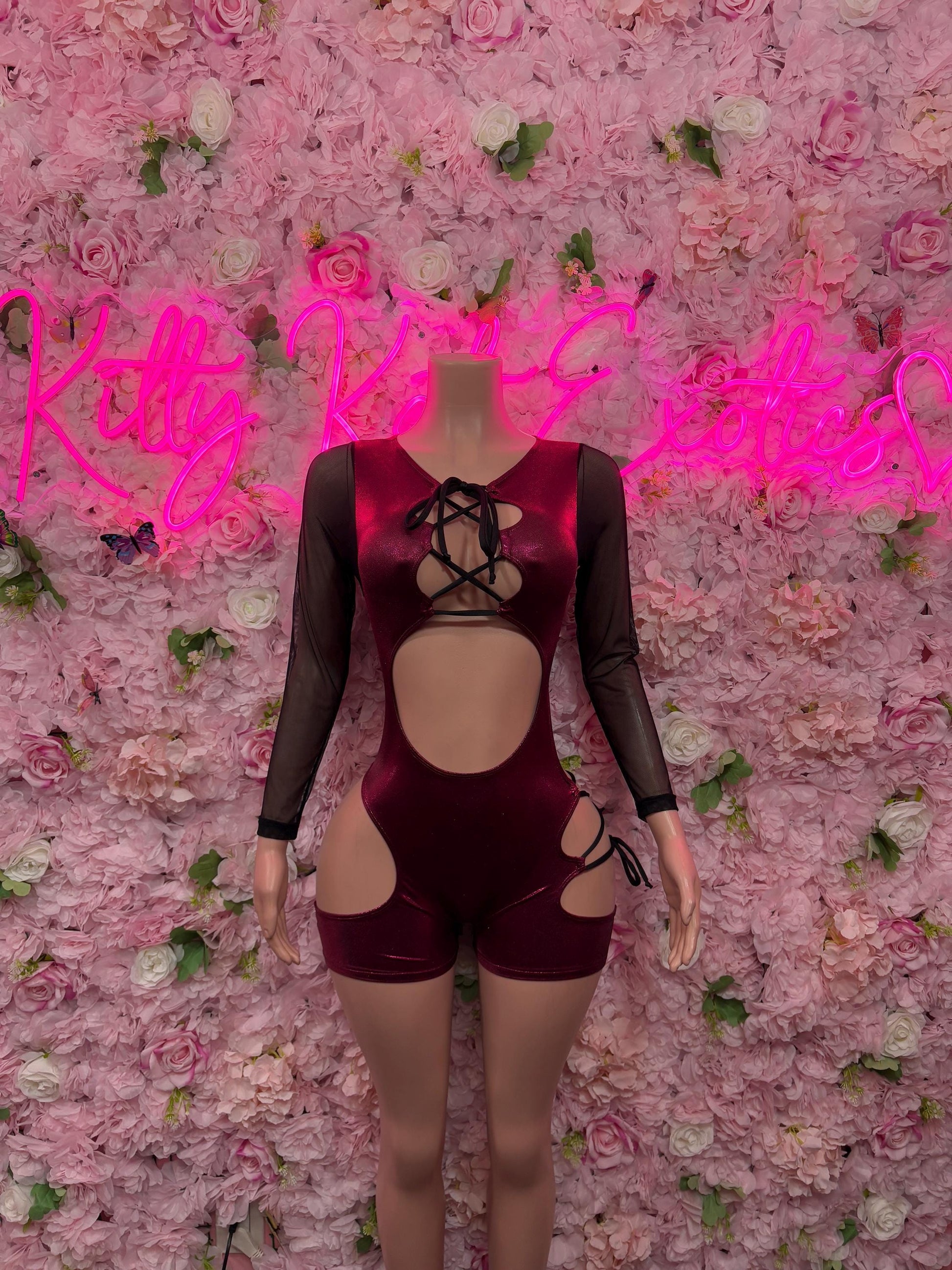 Custom Bottle girl Outfit One Piece Burgundy Metallic Bodysuit -