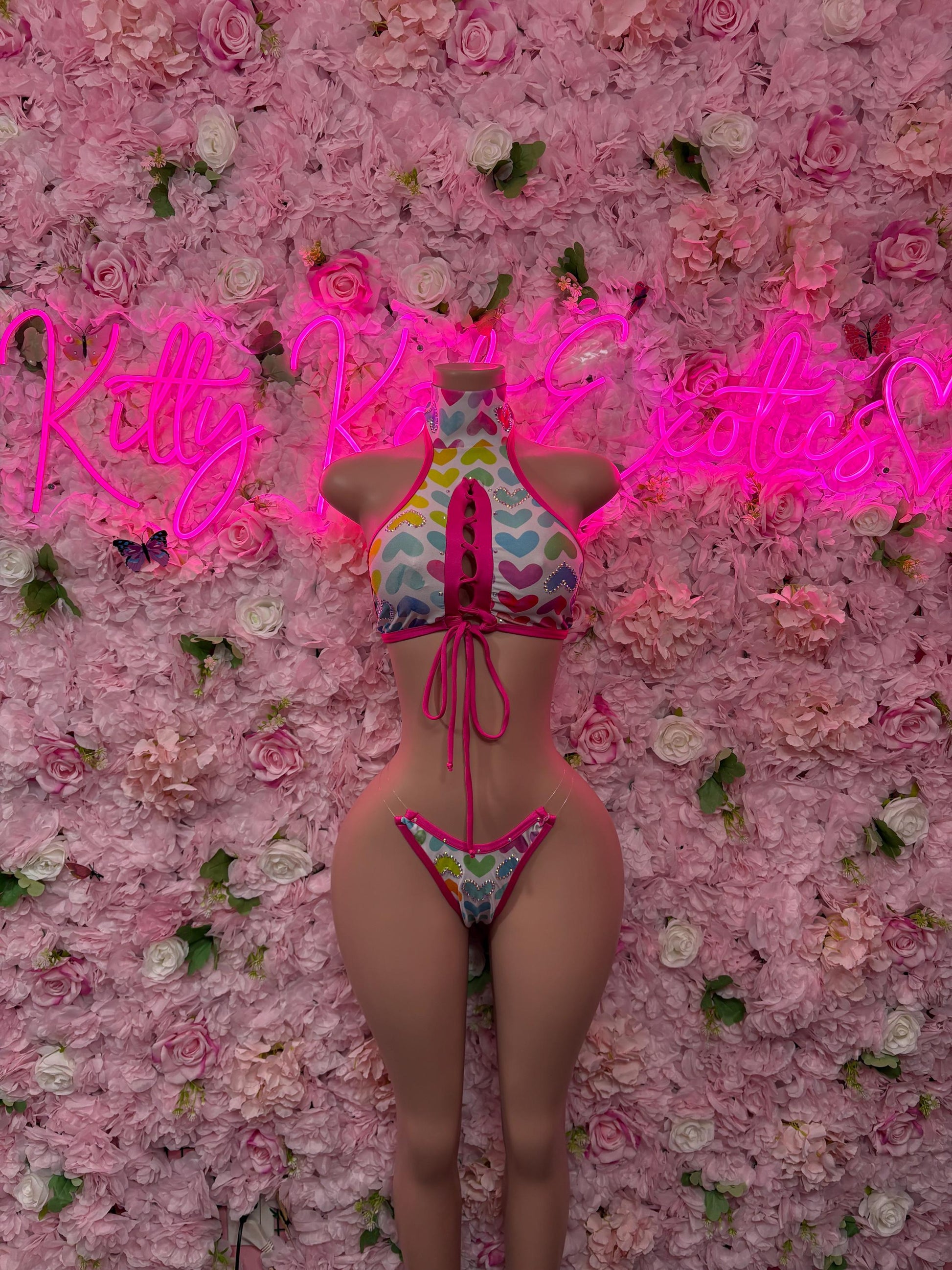 Cute Valentines Day Exotic Dancewear Two-Piece Bodysuit - Sexy Hearts Romantic Outfit for Date Night - Cute Gift for Her