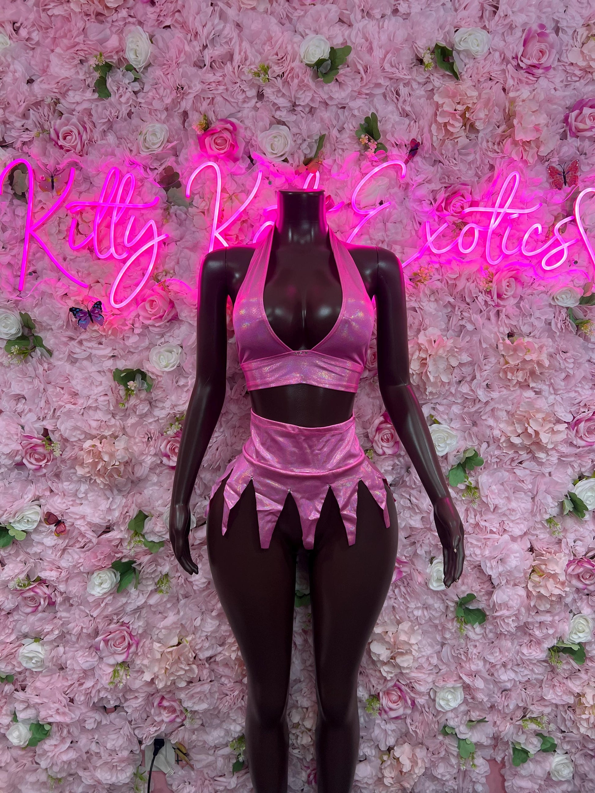 Dance Costume Two Piece Skirt Set Pink Sexy Clubwear & Dancewear for Raves, Parties, or Festivals | Bold and Eye-Catching Outfit