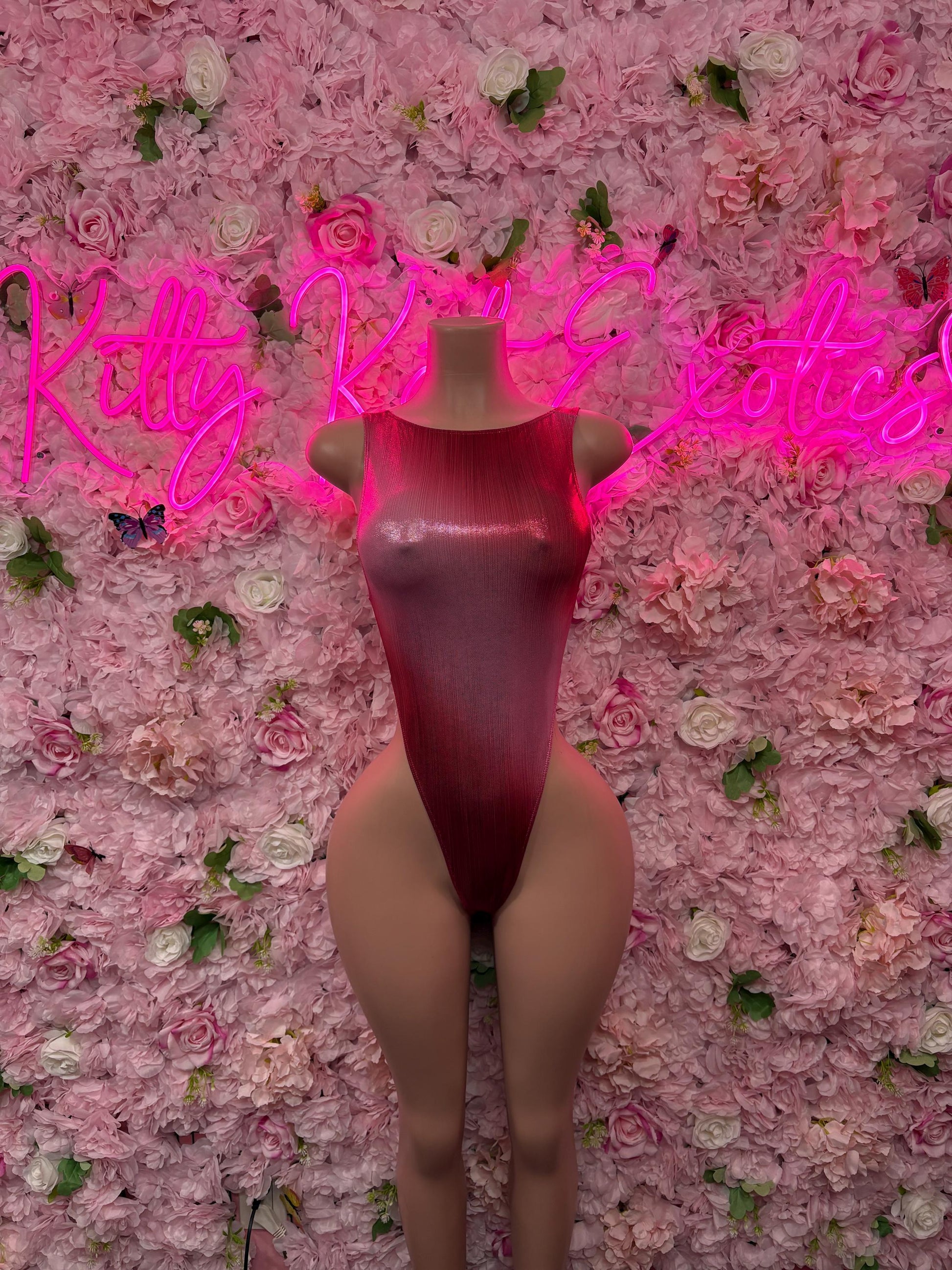 Dancewear One Piece Pink Metallic - Exotic Dancewear Elegant and Sexy Evening Dress for Performers, Events, or Special Occasions