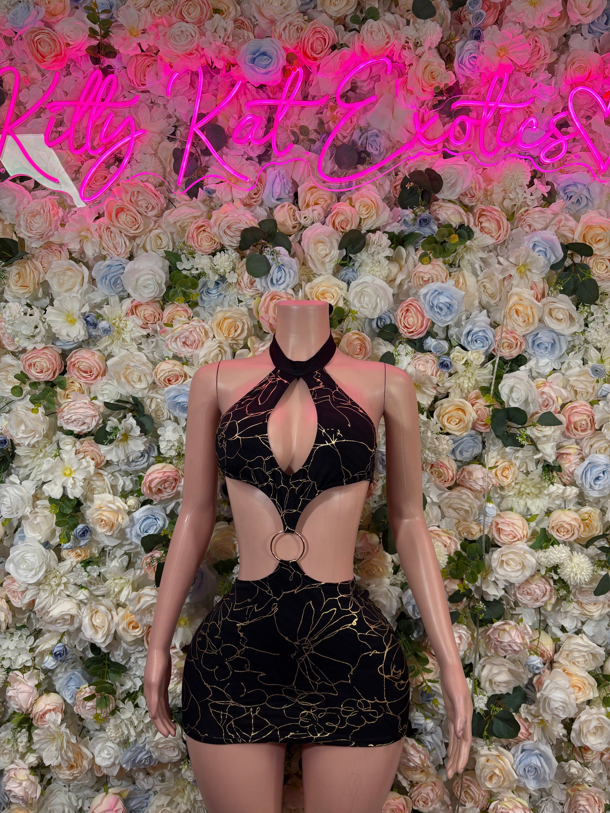 Exotic Dancewear Black & Gold Dress Womens Clothing - Mini Dress Date Night Rave Festival wear