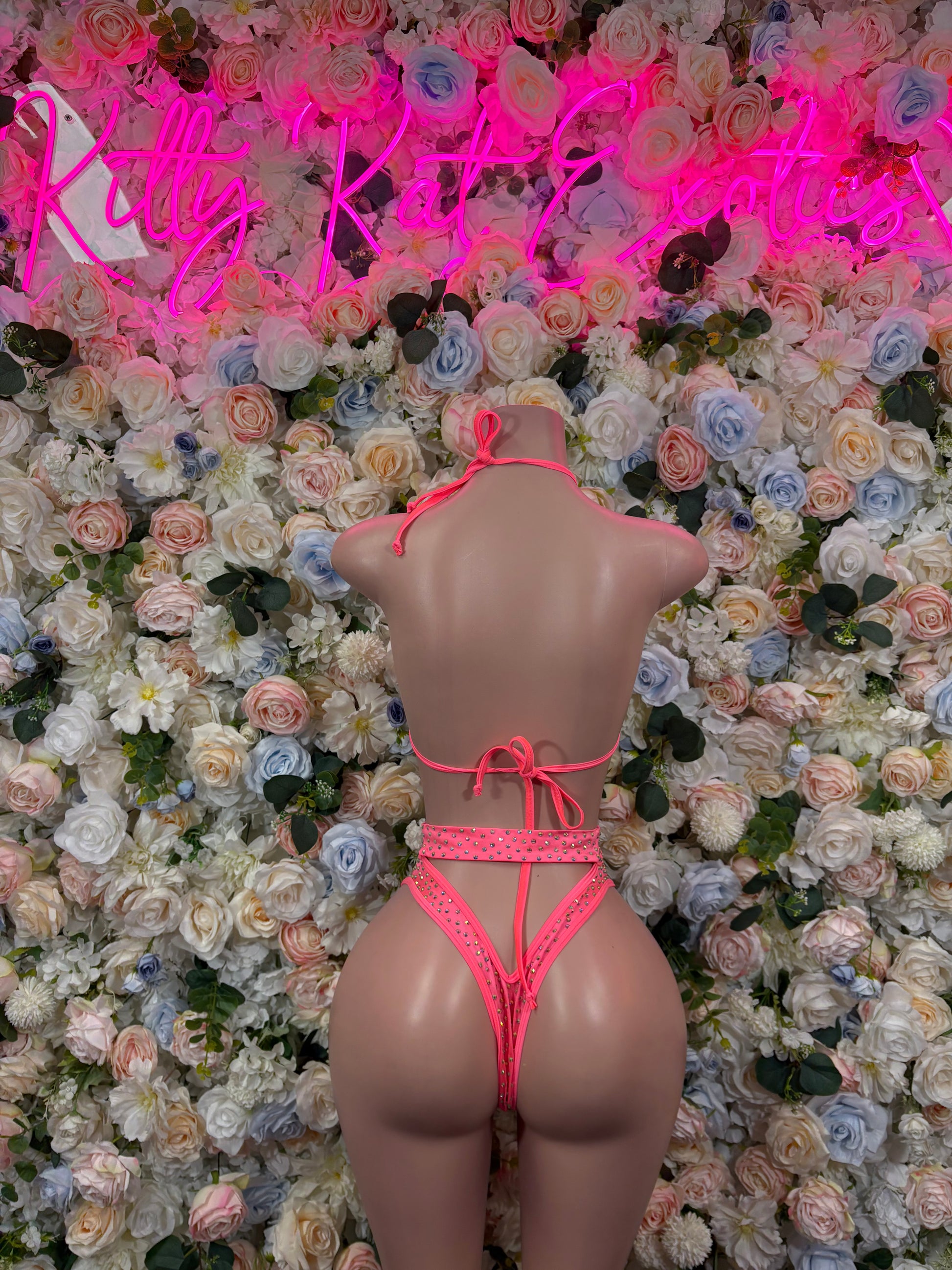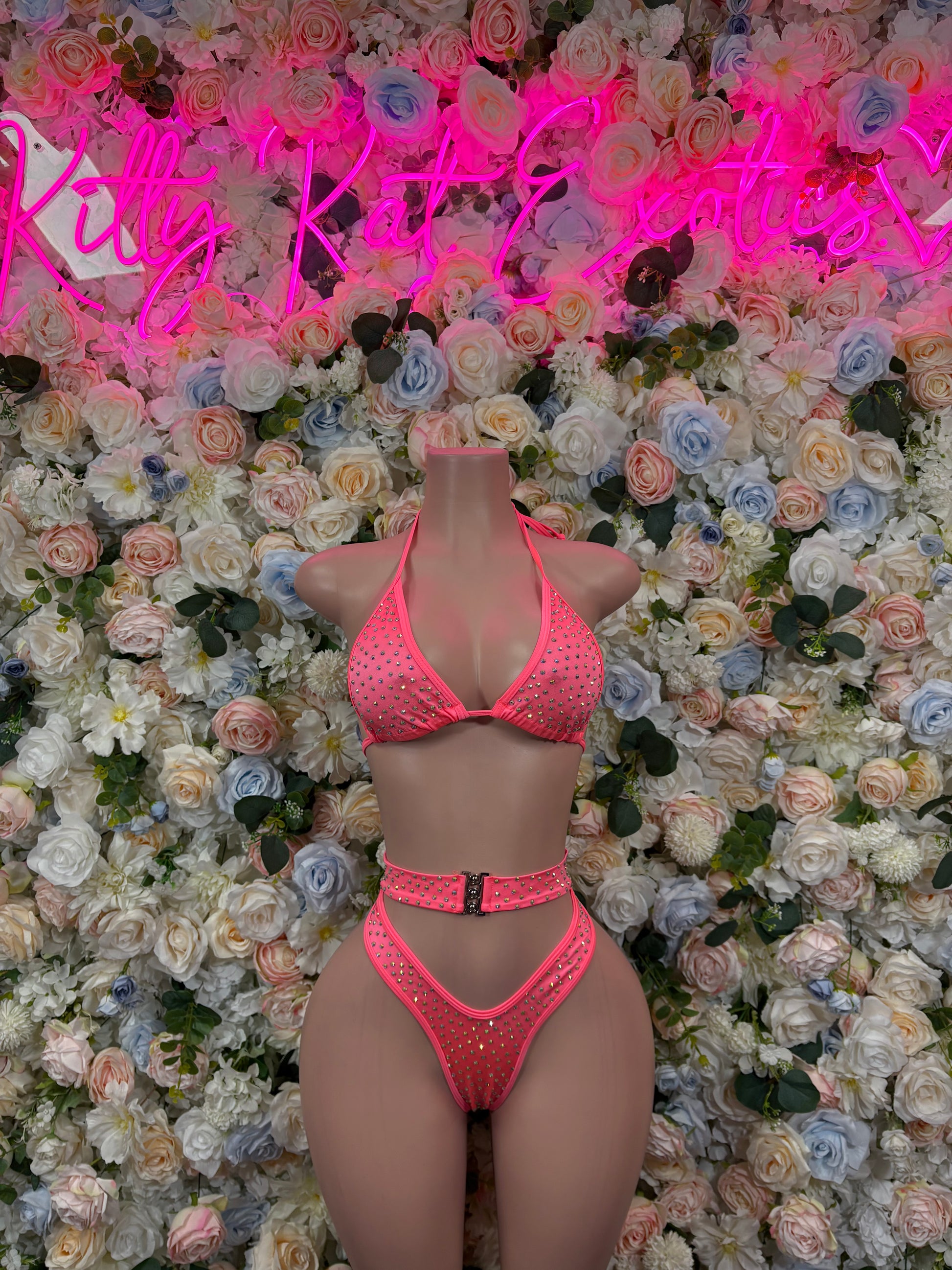 Exotic Dancewear Coral Rhinestone Two Piece set – Rave outfit, rave wear costume, pole dance lingerie, festival bikini