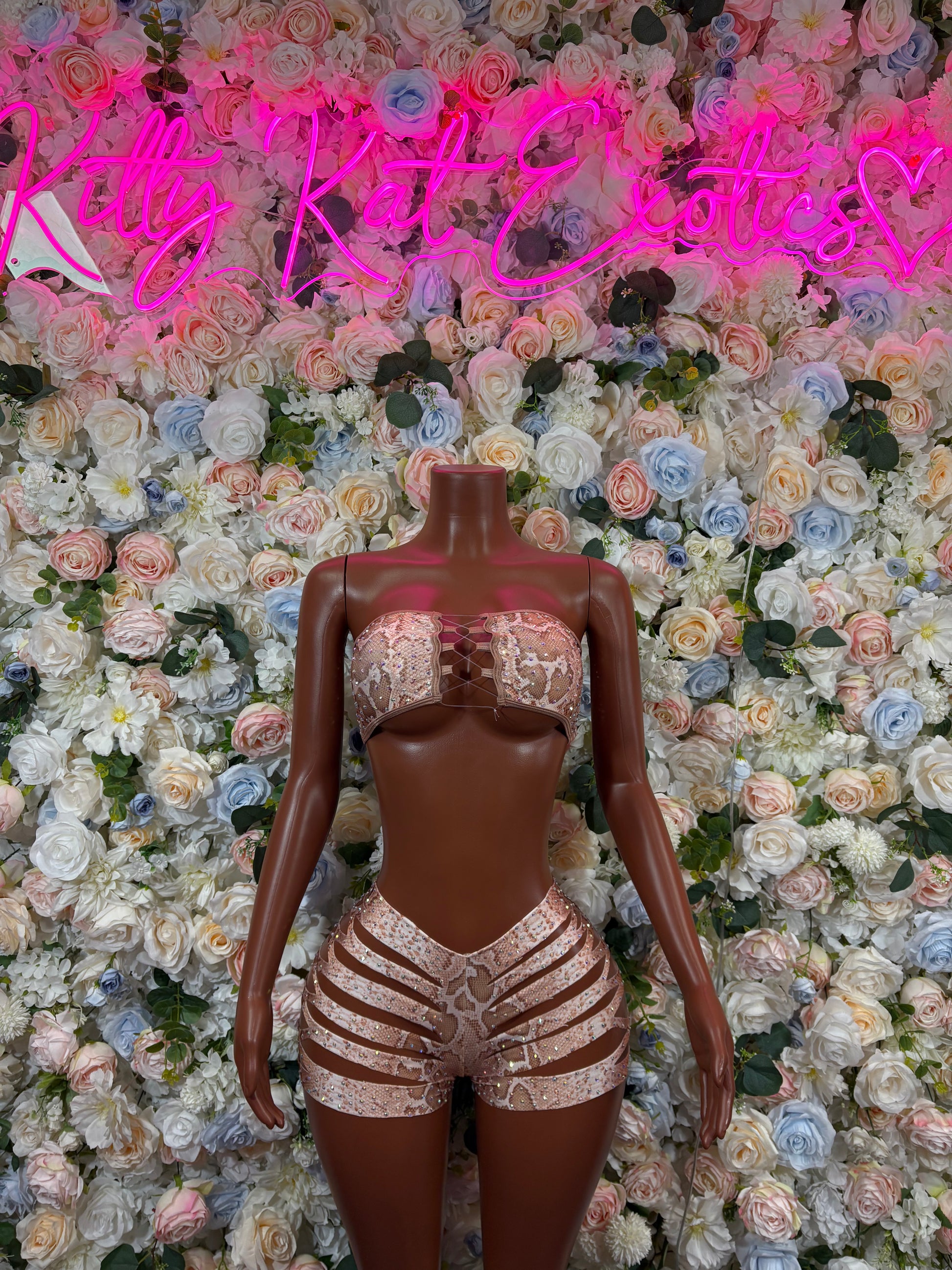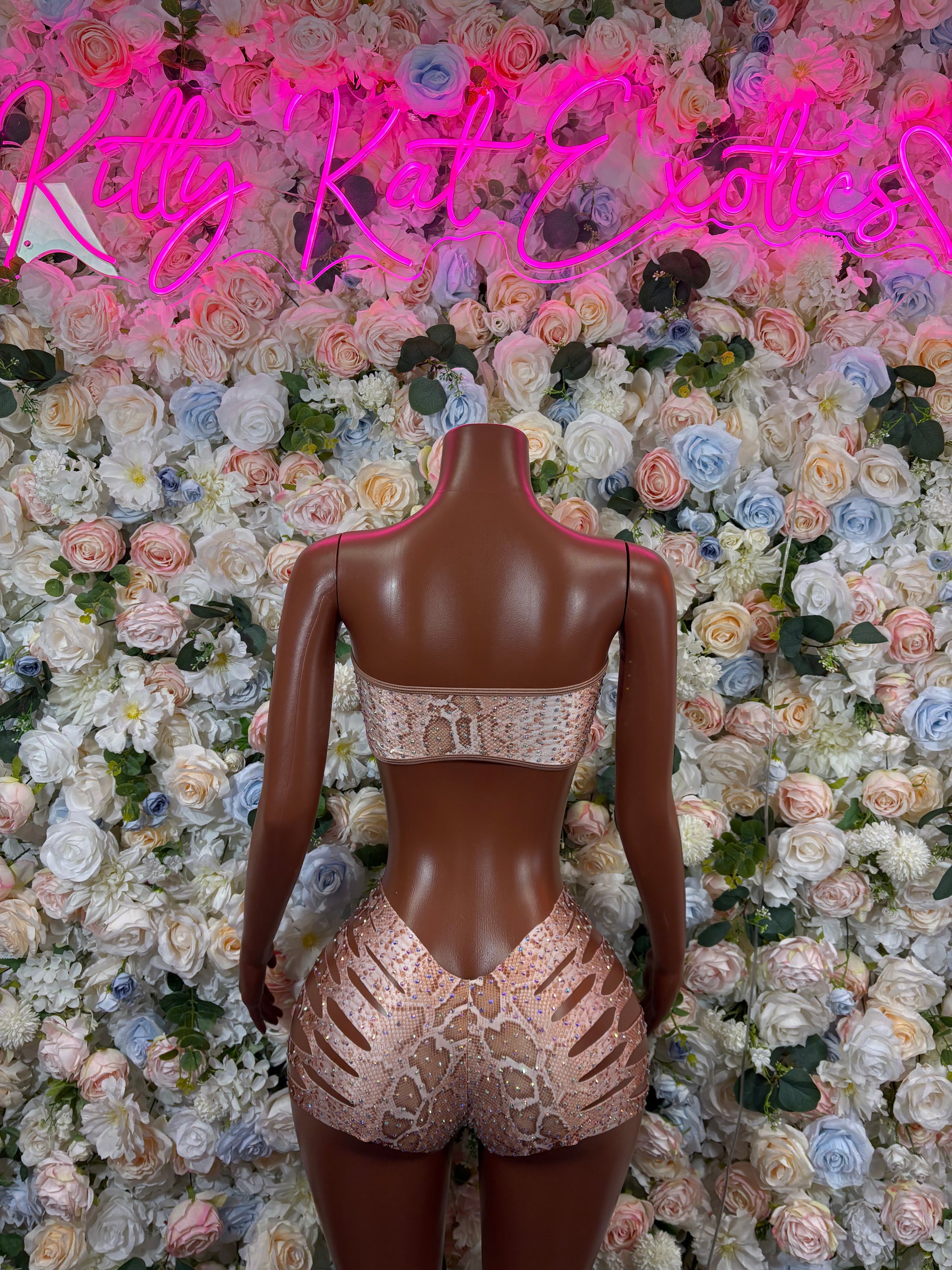 Exotic Dancewear Leopard Rhinestone One Piece set – Rave outfit, rave wear costume, pole dance lingerie, festival bikini