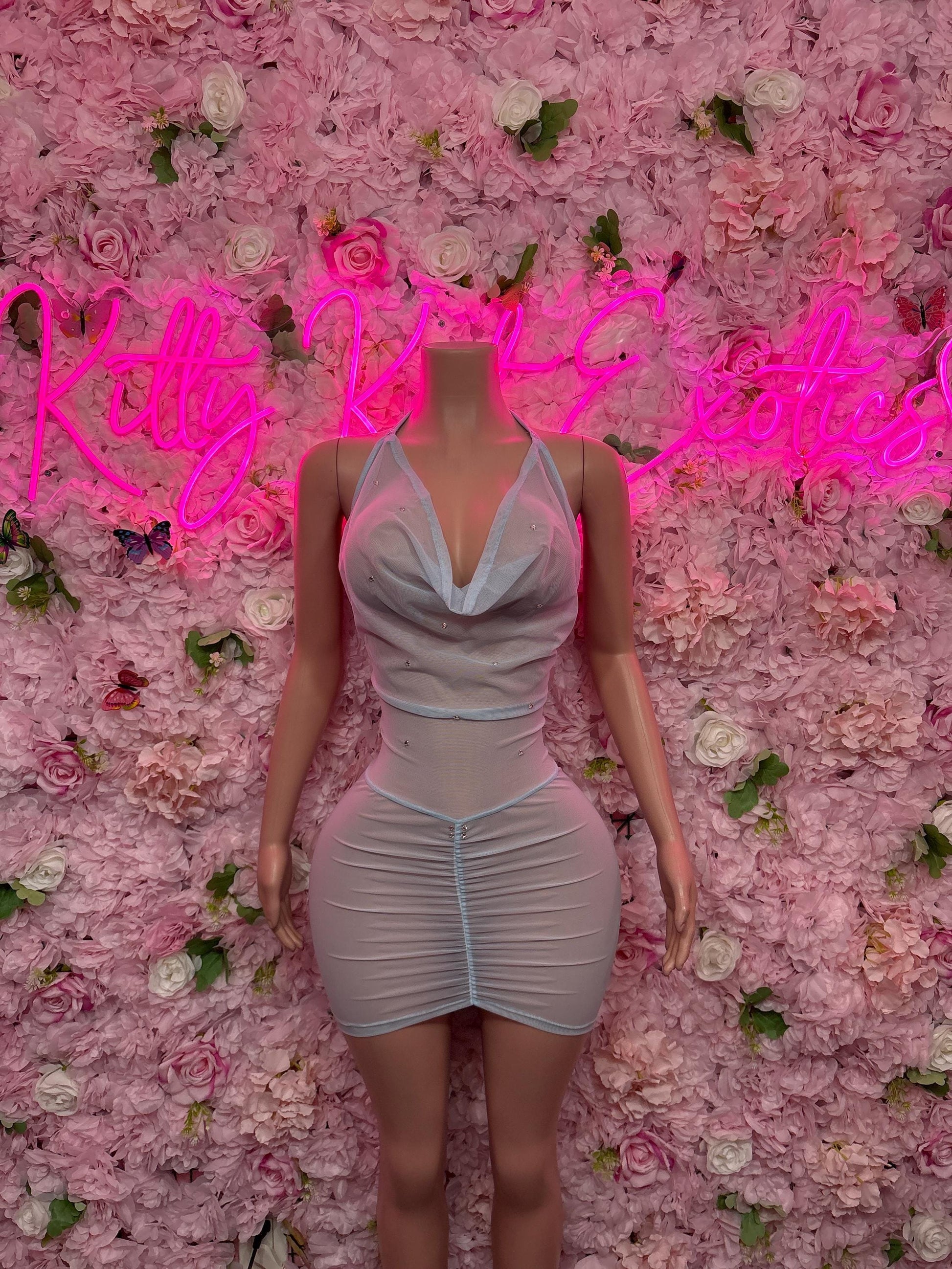 Exotic Dancewear Mesh Dress Blue Clubwear, Rave Outfit, Exotic Dancewear, Festival Outfit, Bottlegirl & Waitress Uniform