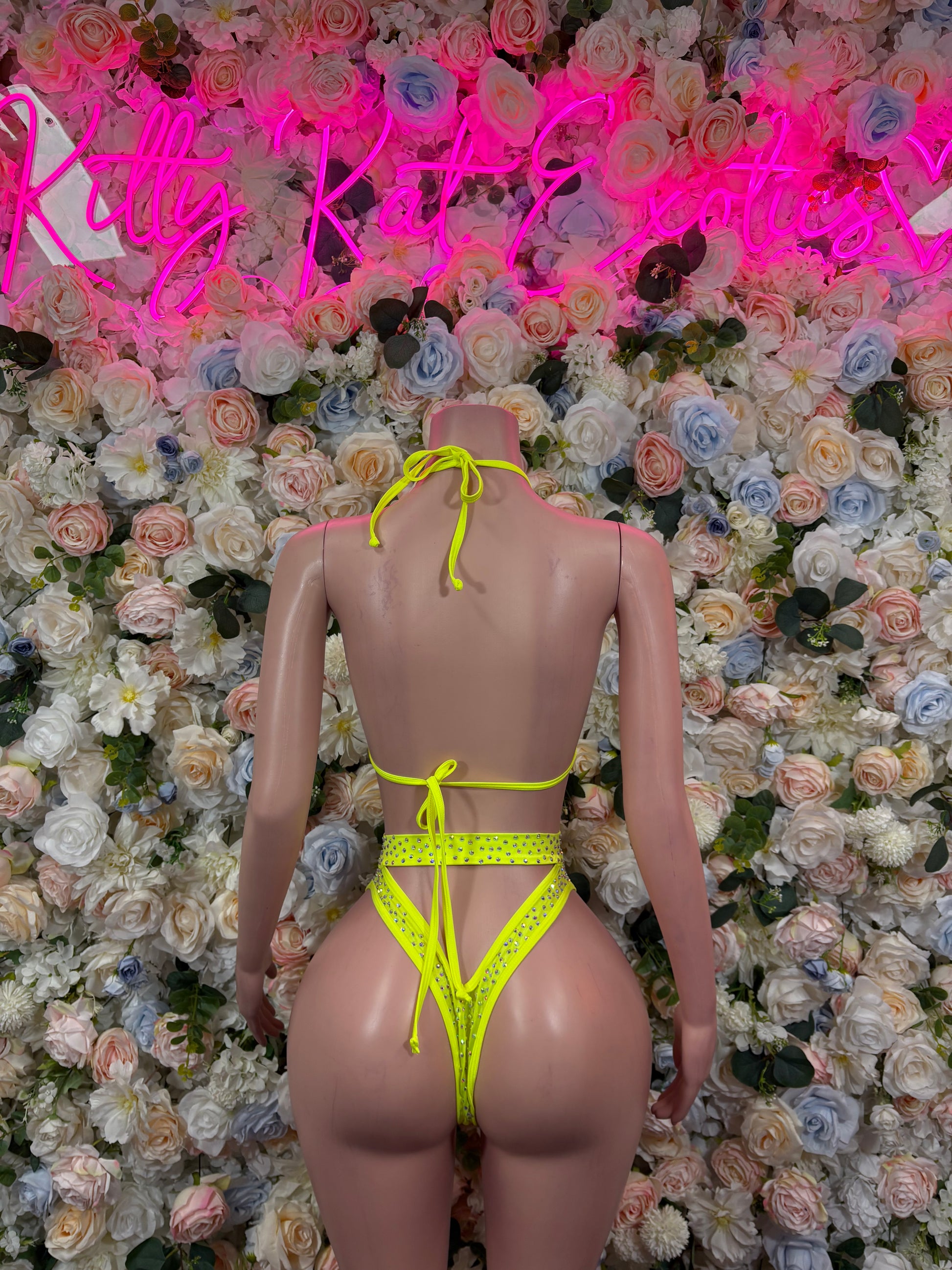 Exotic Dancewear Neon Rhinestone Two Piece set – Rave outfit, rave wear costume, pole dance lingerie, festival bikini