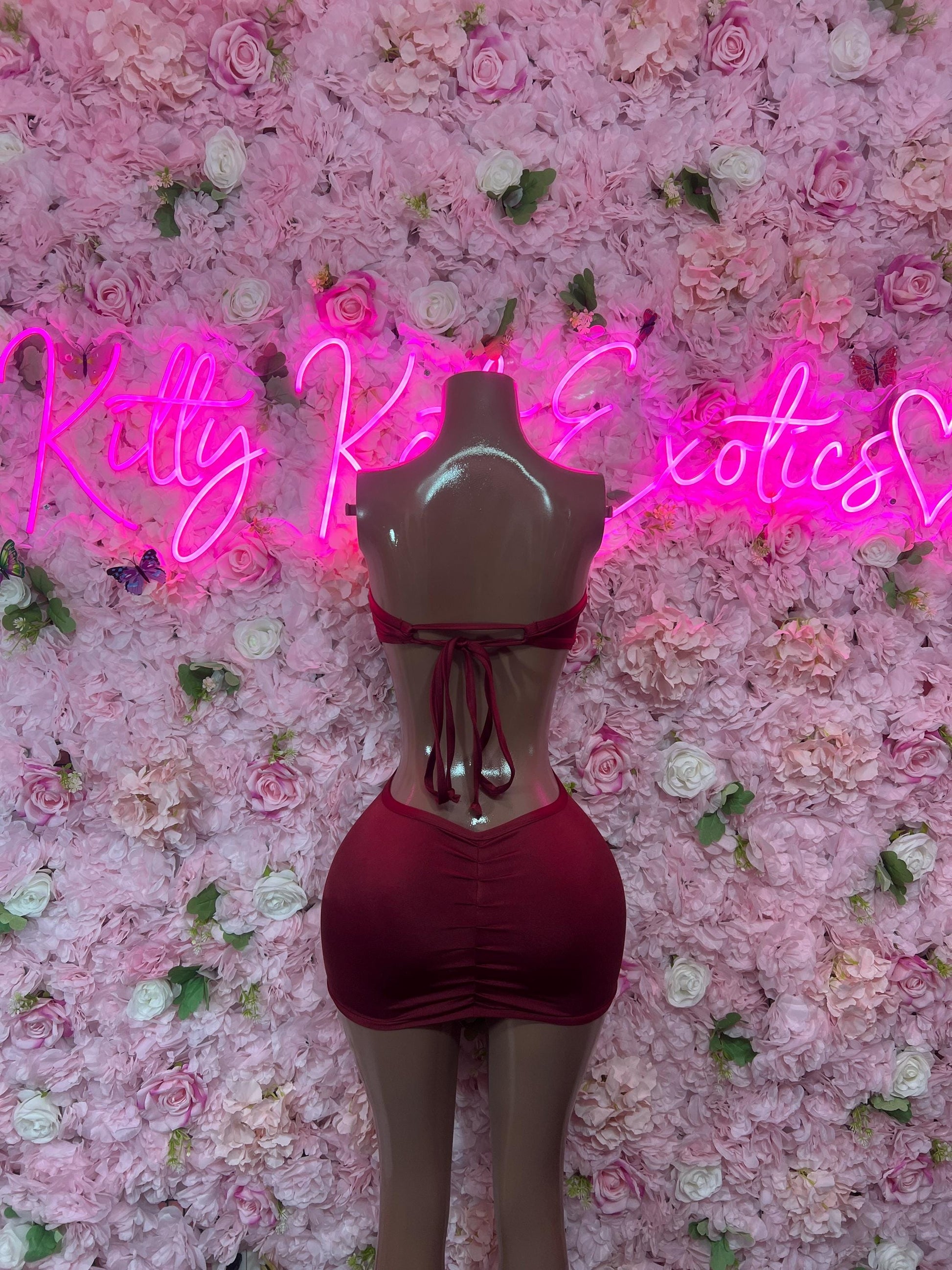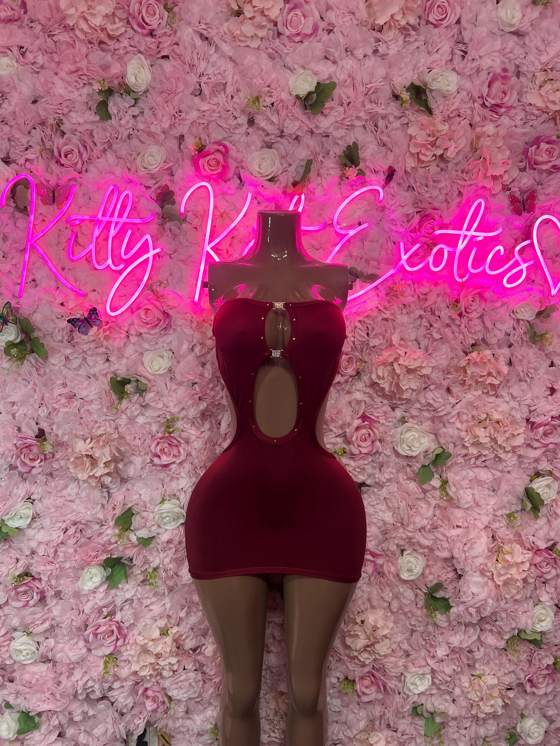 Exotic Dancewear One Piece Burgundy Dress Ravewear - Sexy Festival Outfit, Clubwear, Performance Costume, EDM Party Wear