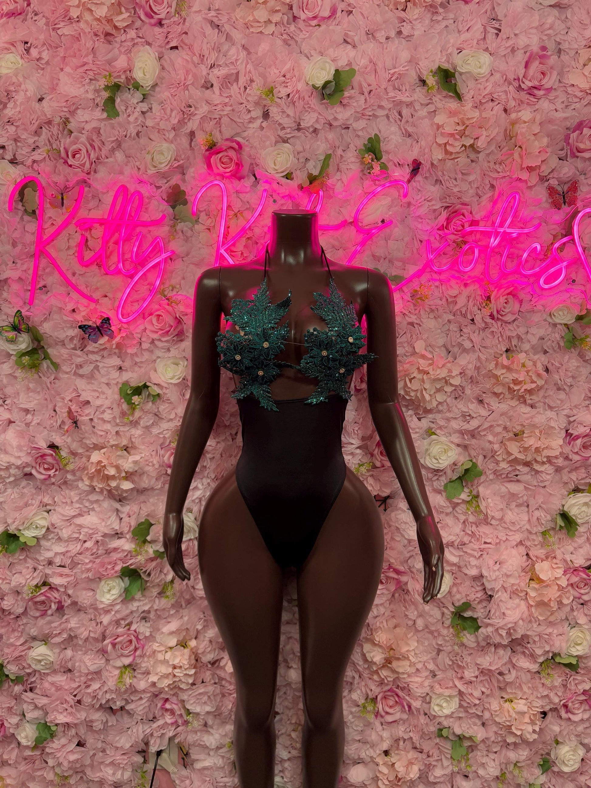Exotic Dancewear One Piece Green Lace Feather Bodysuit - Exotic Dancewear, Bartender Sexy for Performers, Event