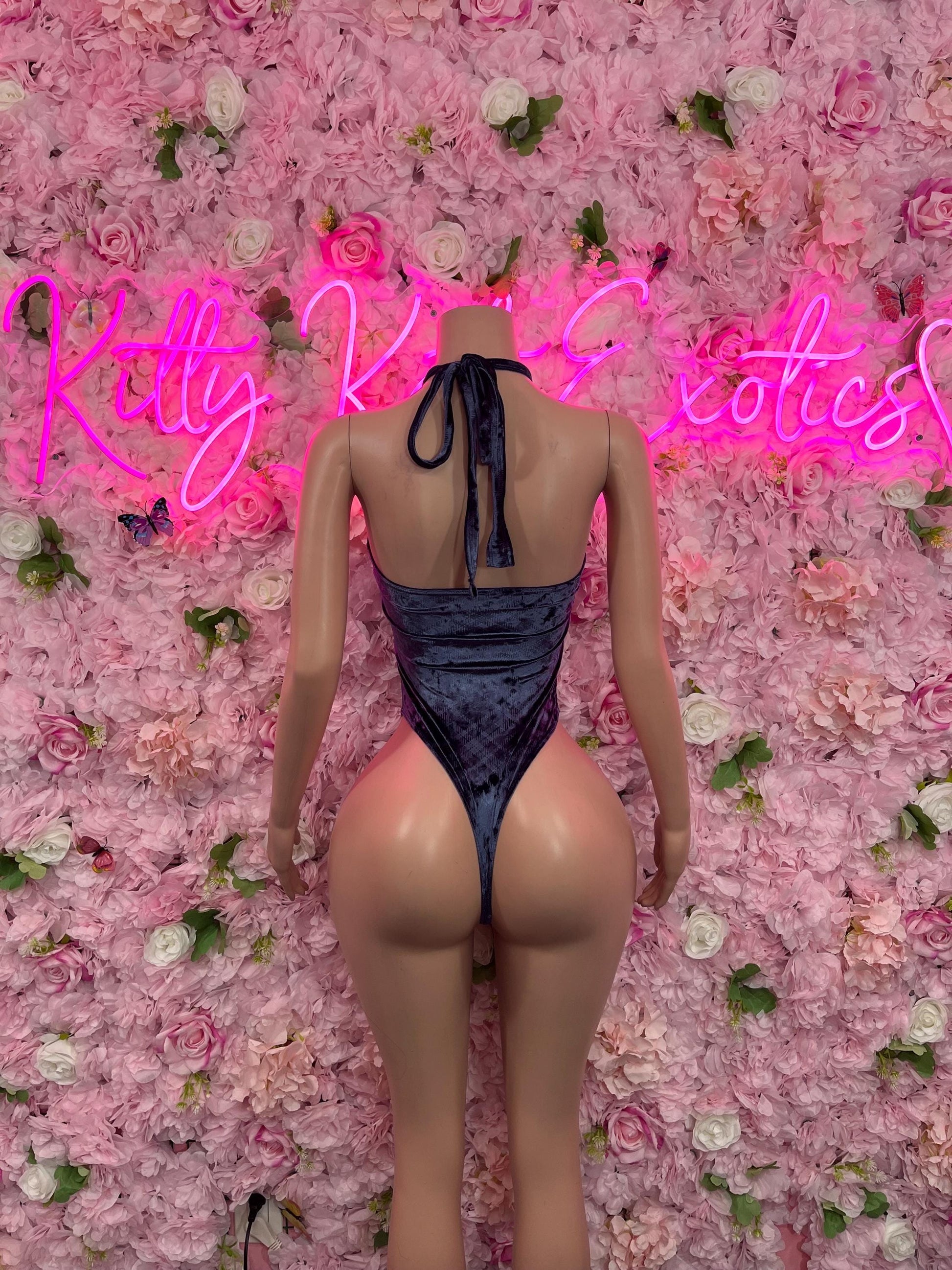 Exotic Dancewear One Piece Navy Blue Velvet Bodysuit Ravewear Bottlegirl Bartender Outfit