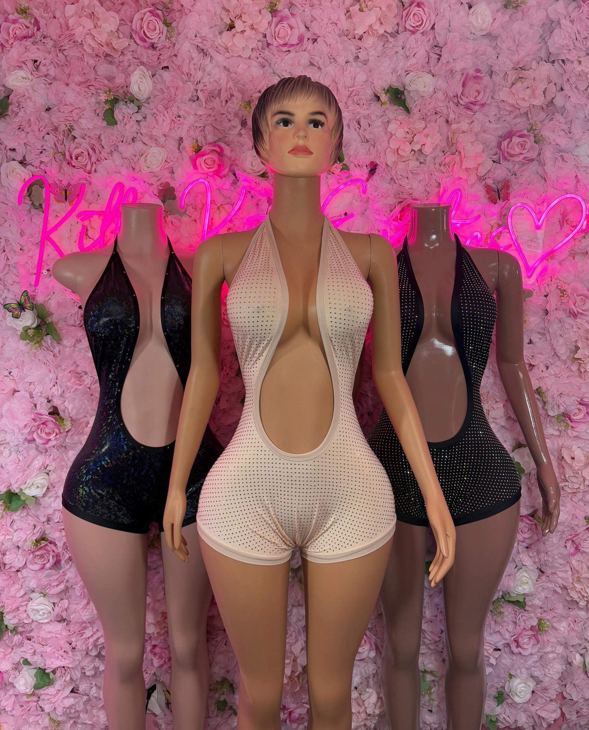 Exotic Dancewear One-Piece Nude Rhinestone Bodysuit Rave Outfit | Festival wear