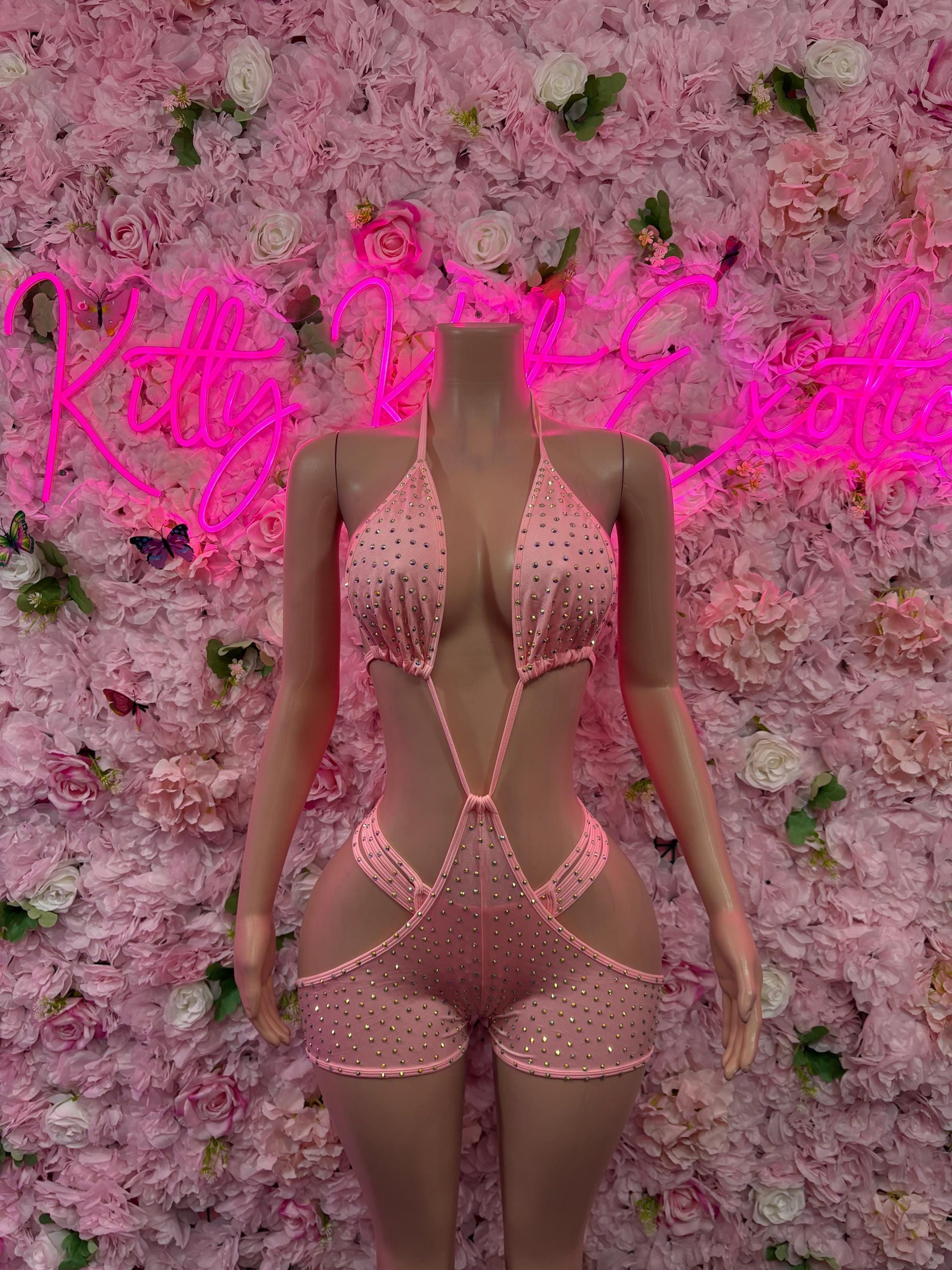 Exotic Dancewear One-Piece Pink Rhinestone Bodysuit Bartender | Exotic Dancewear Festival wear