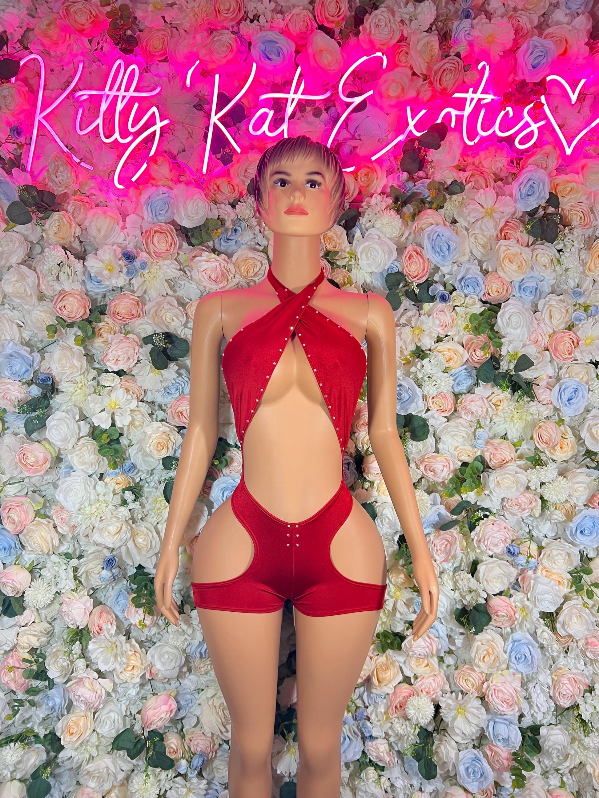 Exotic Dancewear One Piece Red - Rave Outfits Costume Bold Dance Outfit