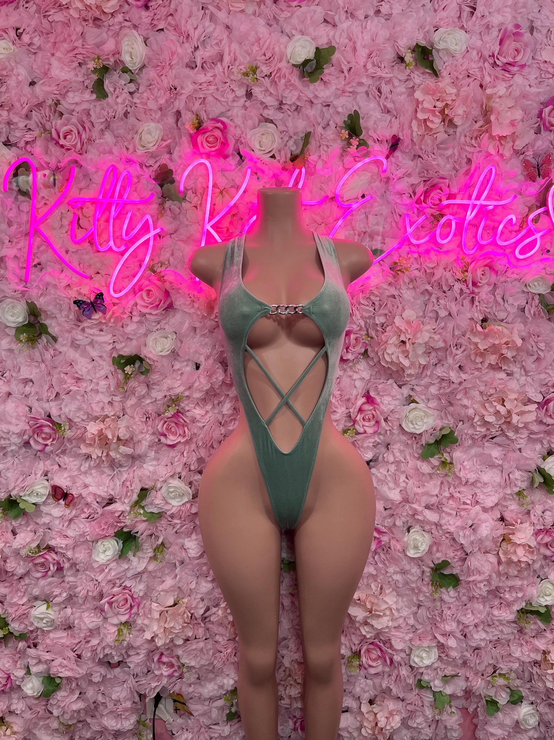 Exotic Dancewear One Piece Velvet Green Dancewear Bottlegirl Outfit Clubwear