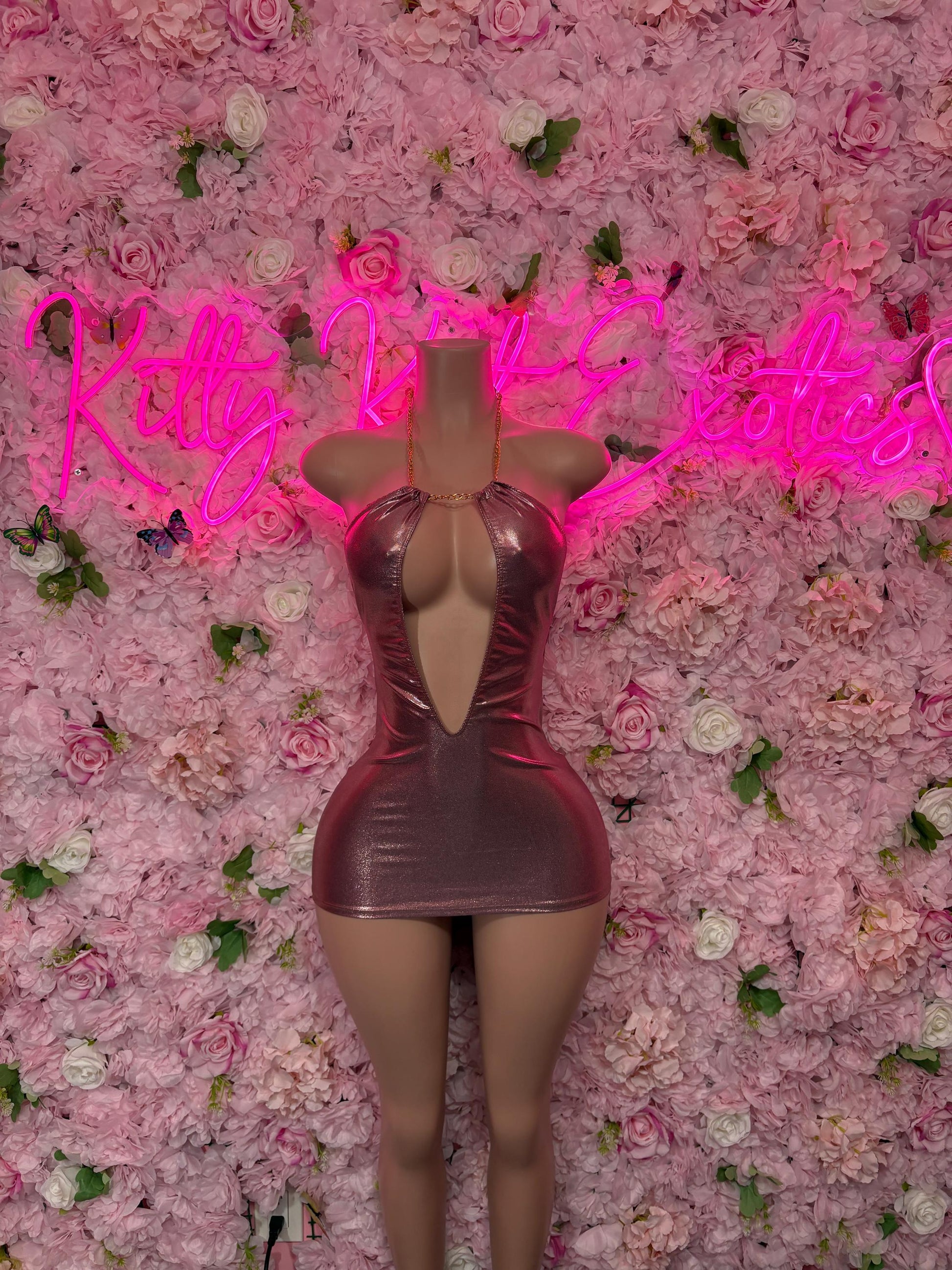 Exotic Dancewear Rose Gold Dress Sexy Party Outfit, Clubwear, or Night Out Fashion | Shiny and Bold Statement Look Women‘s Clothing