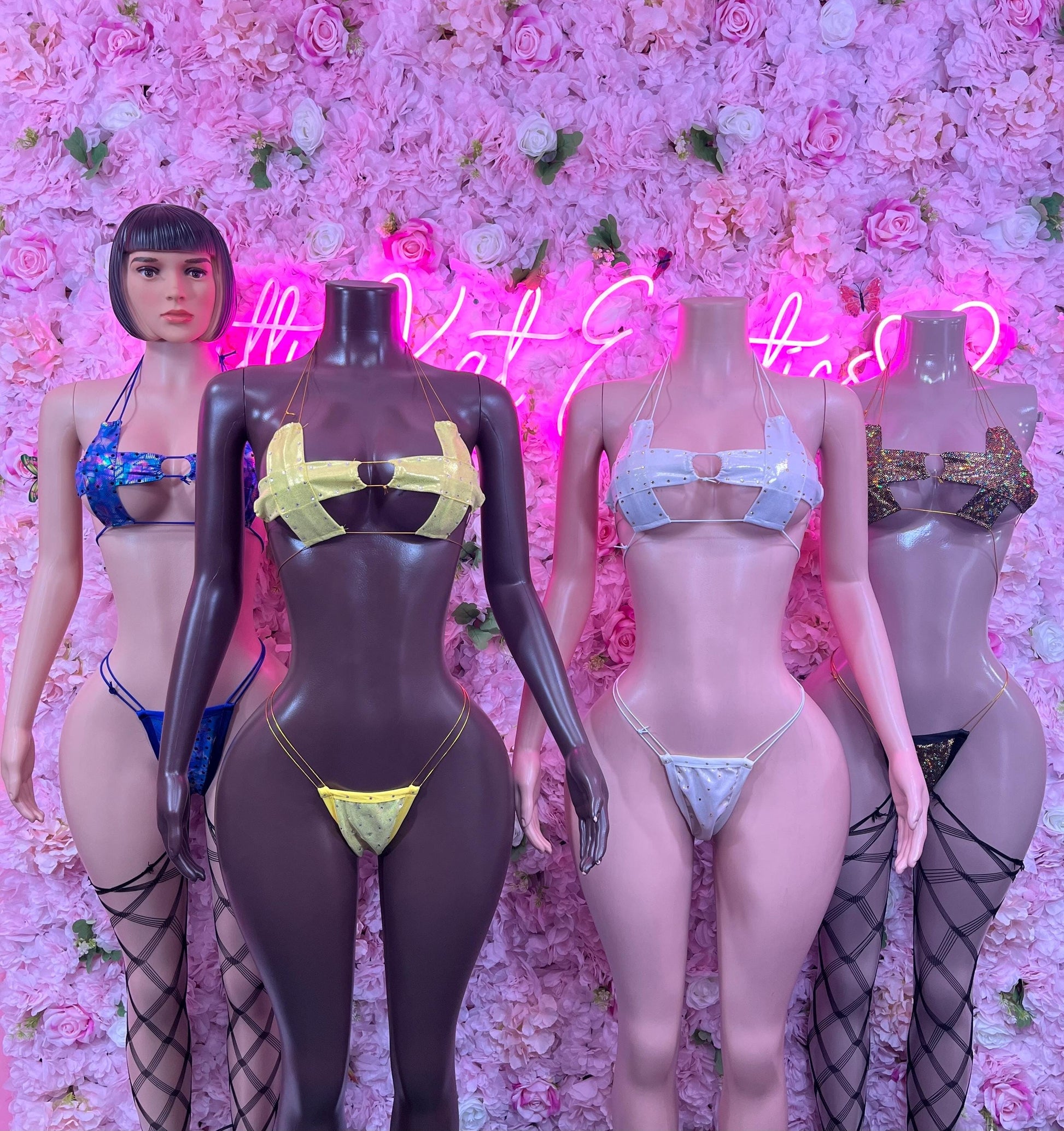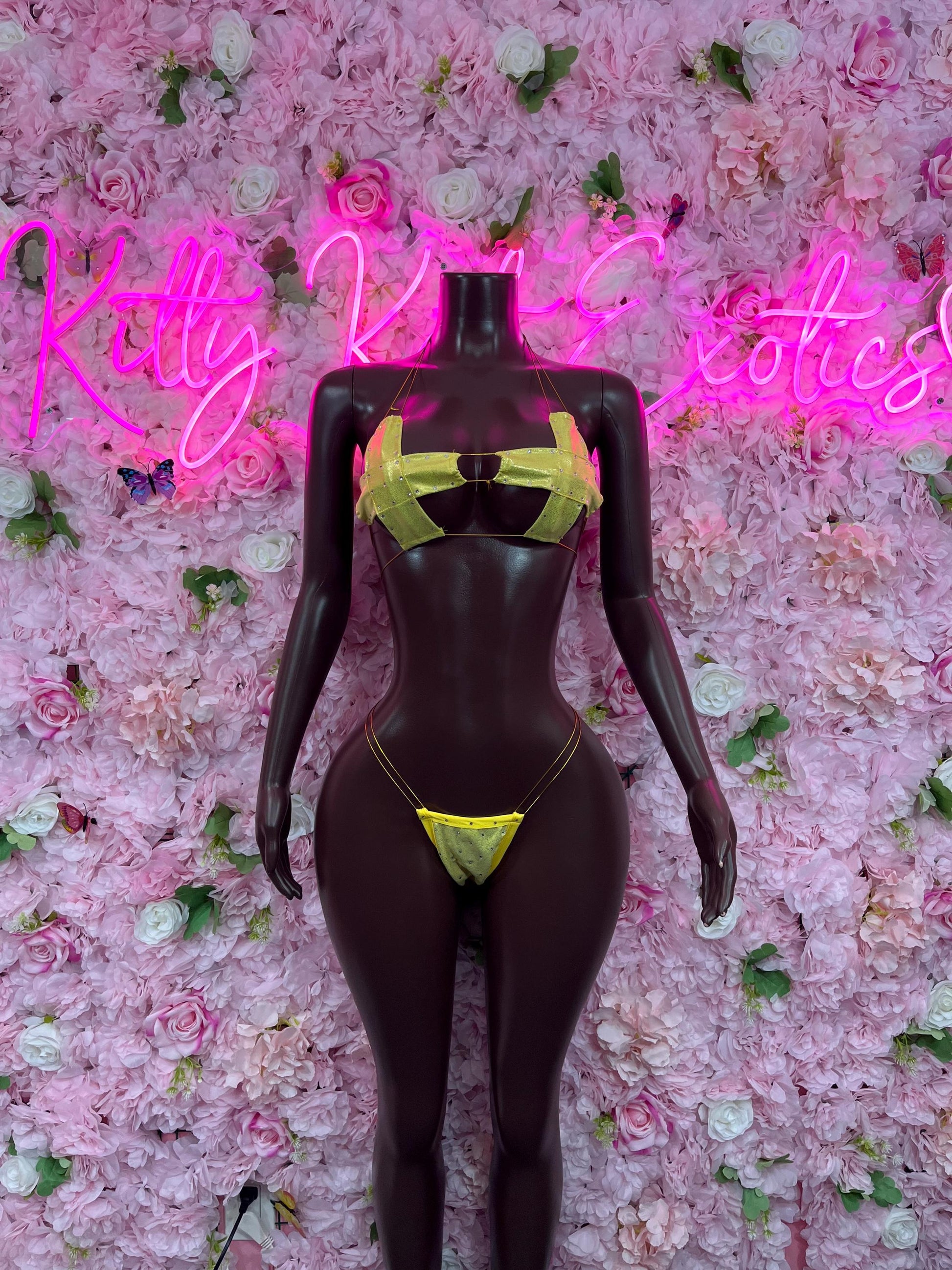 Exotic Dancewear Two-Piece Bikini Yellow Dancewear Poledance wear Ravewear