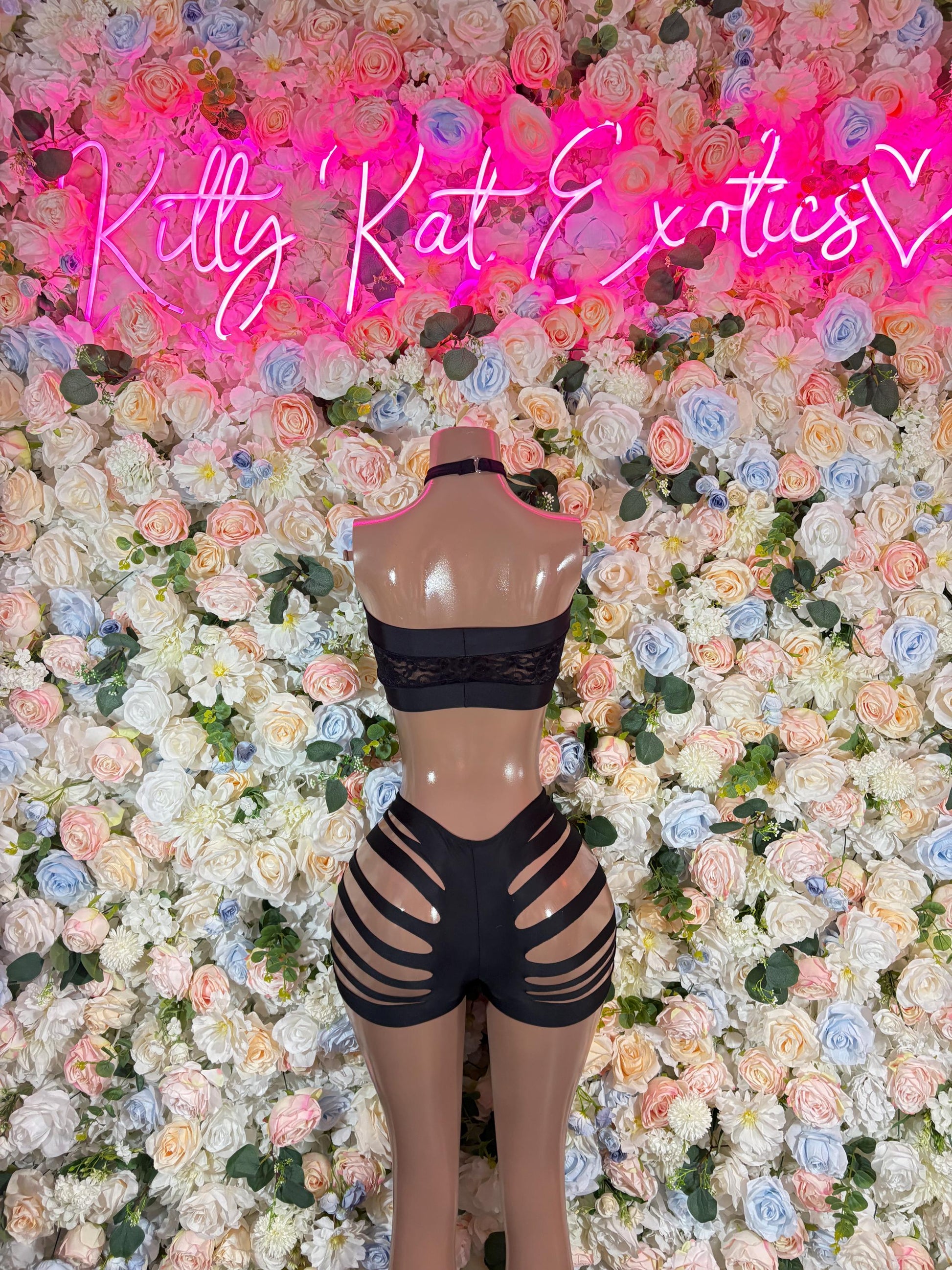 Exotic Dancewear Two Piece Black Lace Bodysuit - Festival Outfit Bartender Set