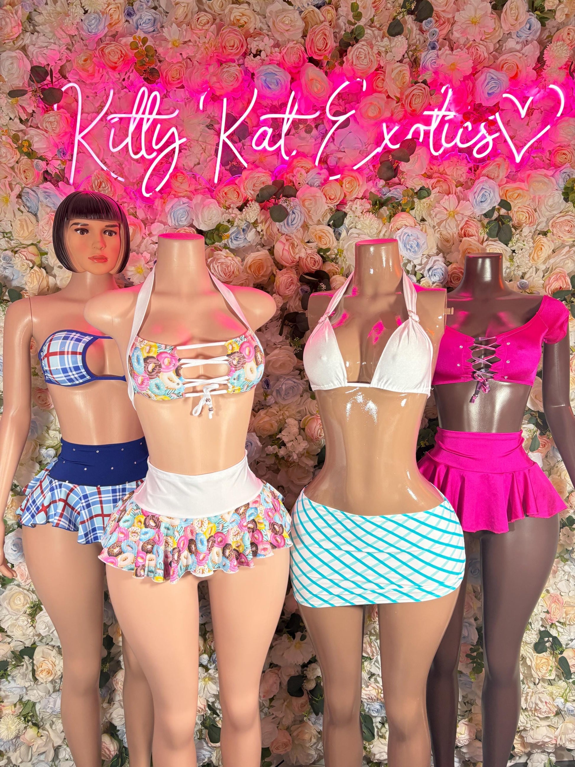 Exotic Dancewear Two-Piece Blue Skirt Set School Girl – Sexy Bartender | Rave Wear Festival wear Role Play Costume