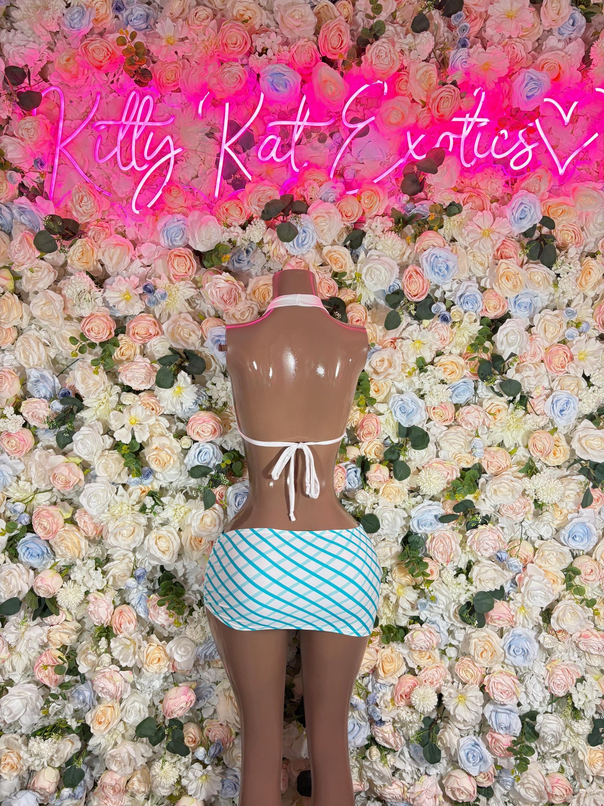 Exotic Dancewear Two-Piece Blue Skirt Set School Girl Sexy Bartender | Rave Wear Festival wear Role Play Costume