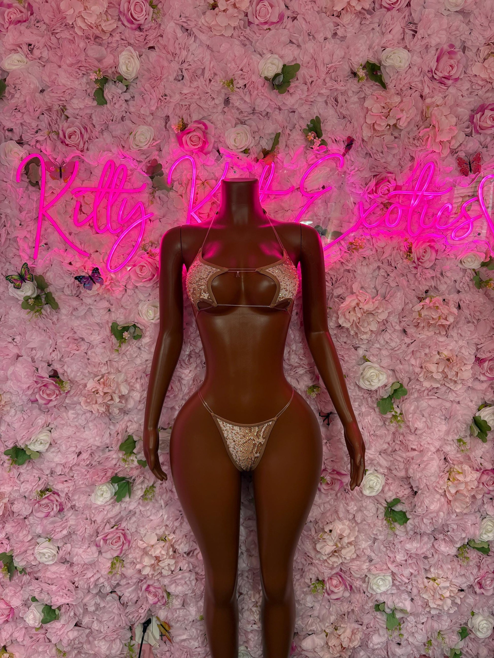 Exotic Dancewear Two-Piece Brown Rhinestone Bikini Rave Outfit | Festival wear