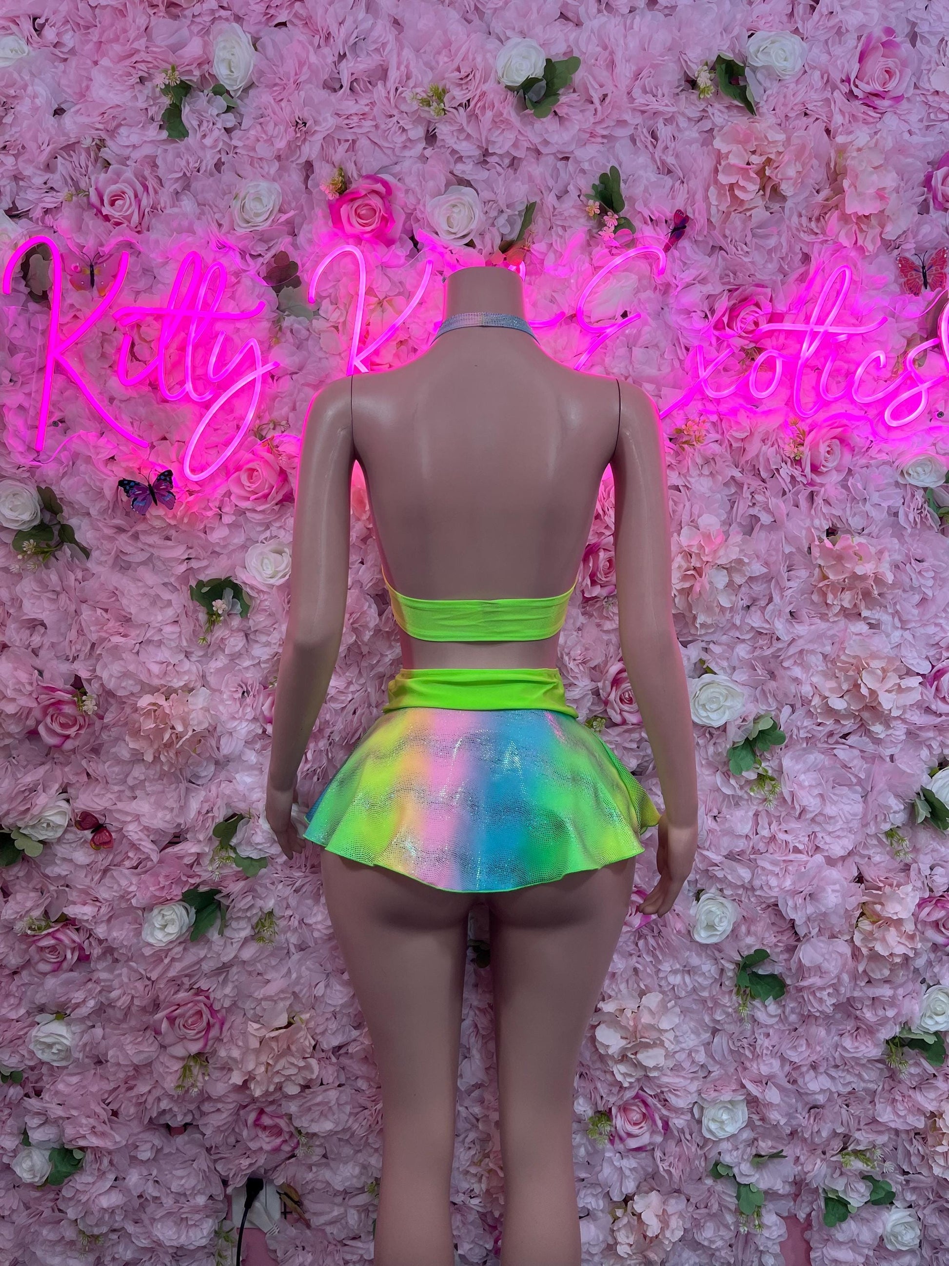 Exotic Dancewear Two Piece Multicolor Bottlegirl Ravewear Festival wear Beach wear