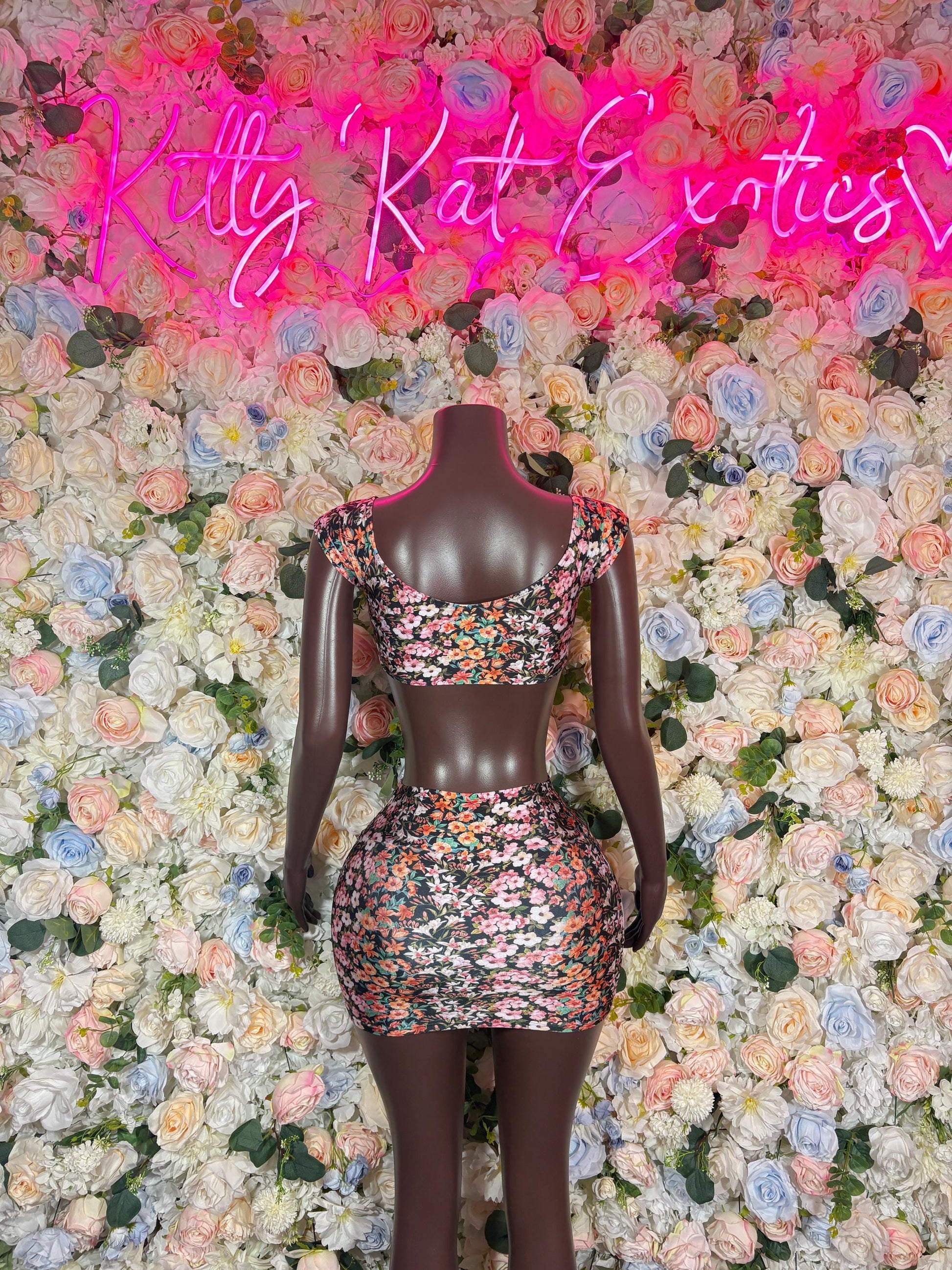 Exotic Dancewear - Womens Floral Two Piece Skirt Bartender Ravewear Festival