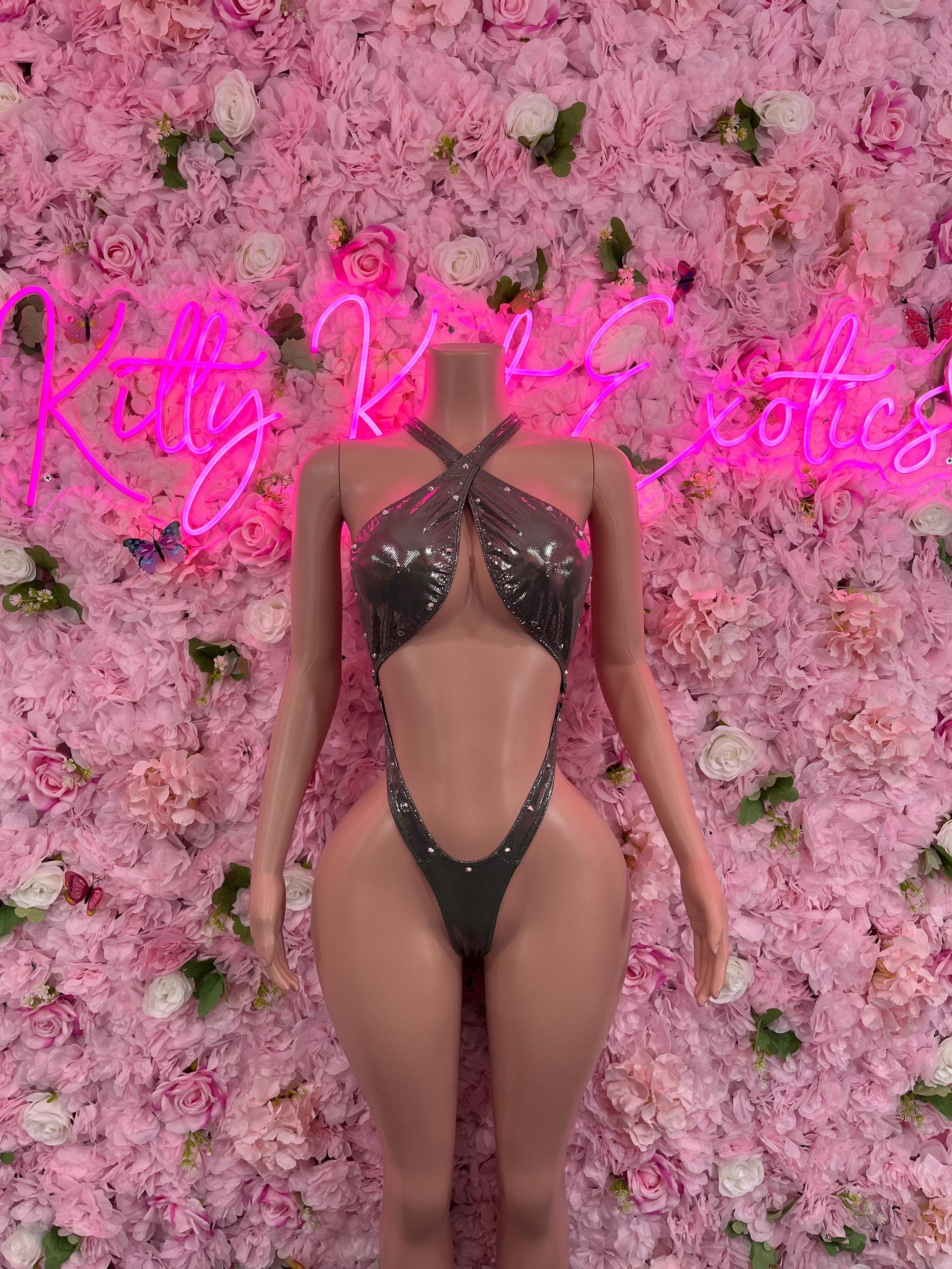 Exotic DancewearOne Piece Bodysuit Black Metallic