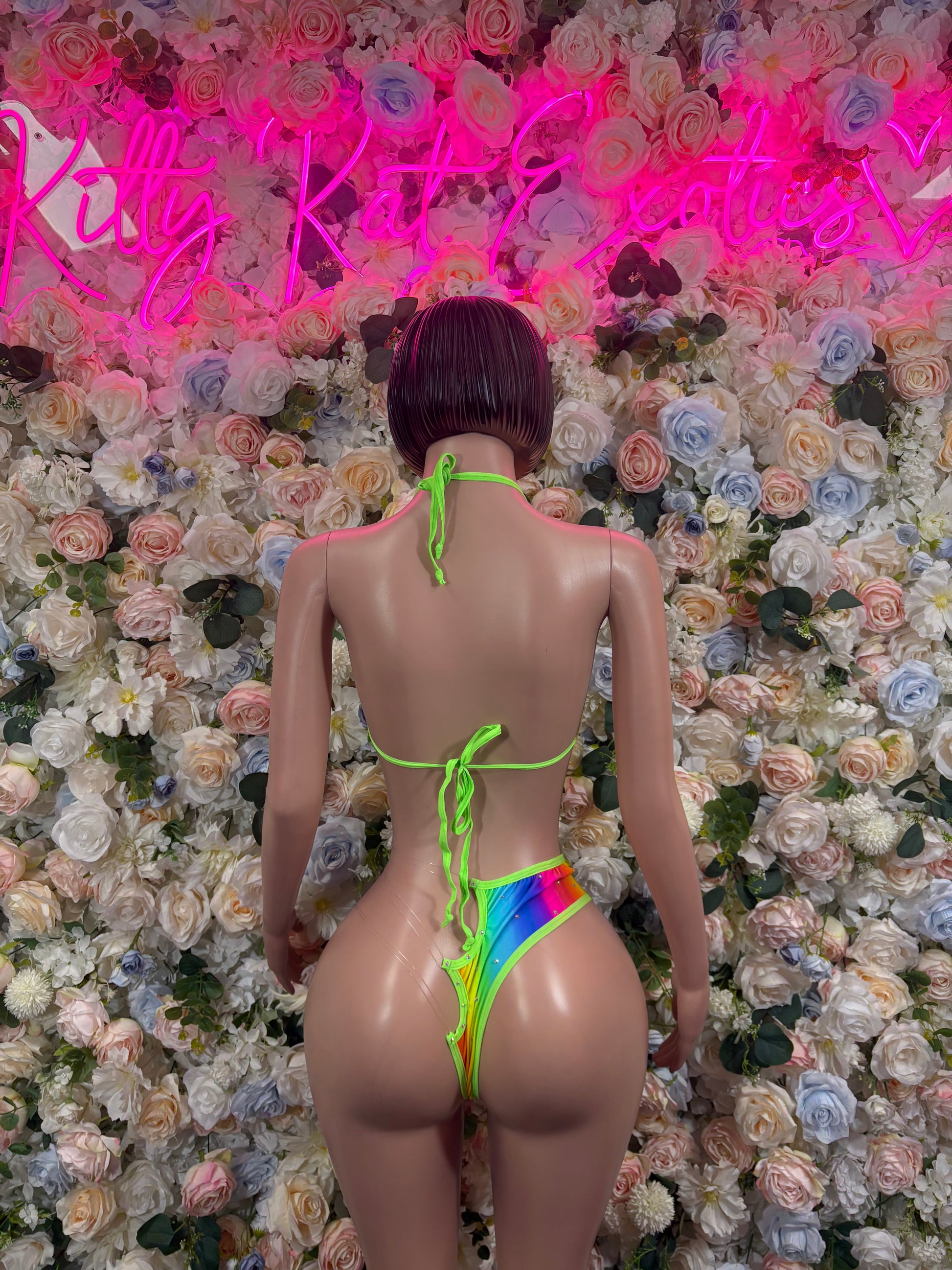 Festival Clothing Multicolor Two-Piece Cutoff Bikini – Festival & Rave Wear, Exotic Dancewear for Women