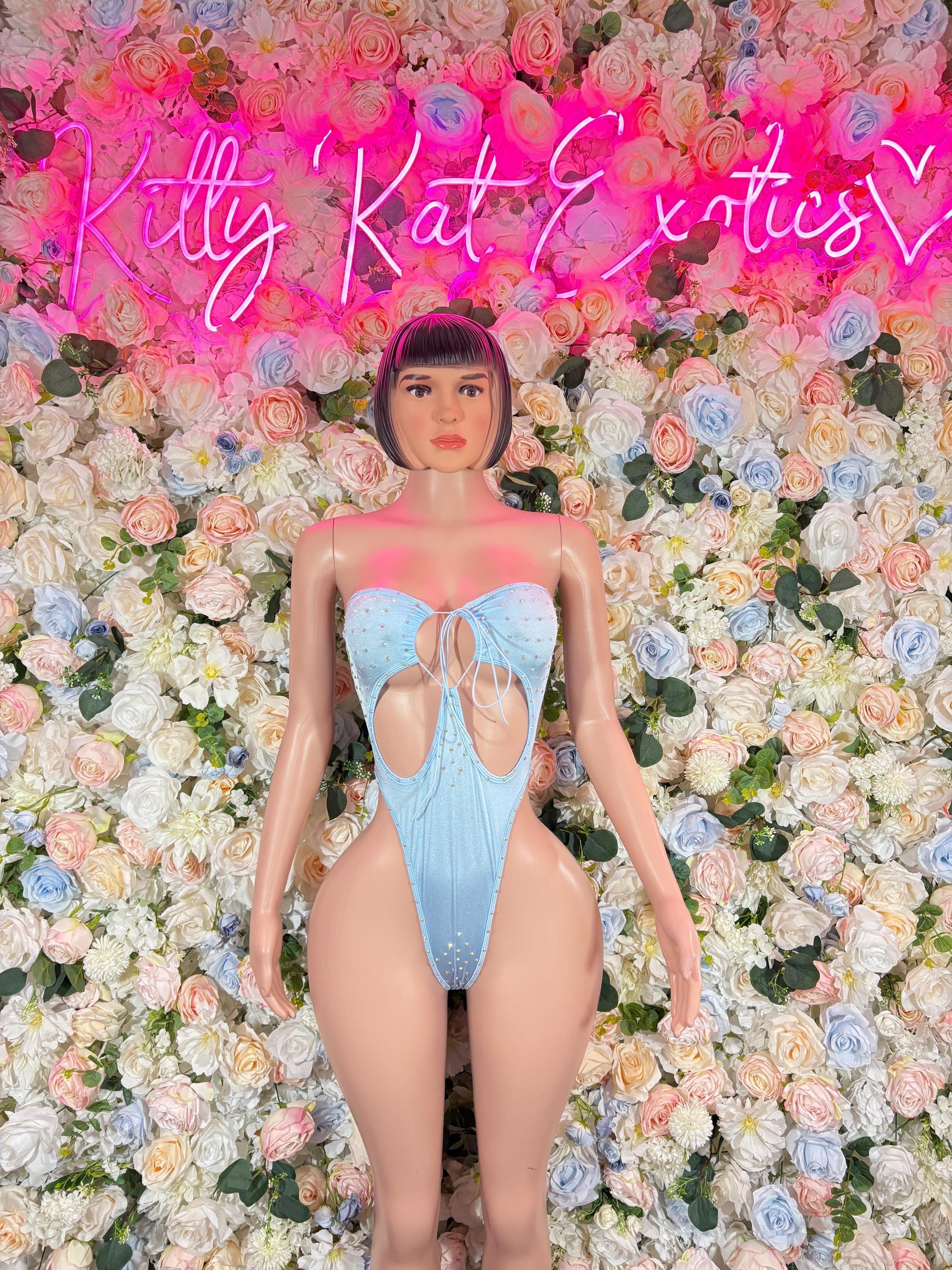 Festival Clothing One Piece Rhinestone Bodysuit Baby Blue Rave wear Festival Wear