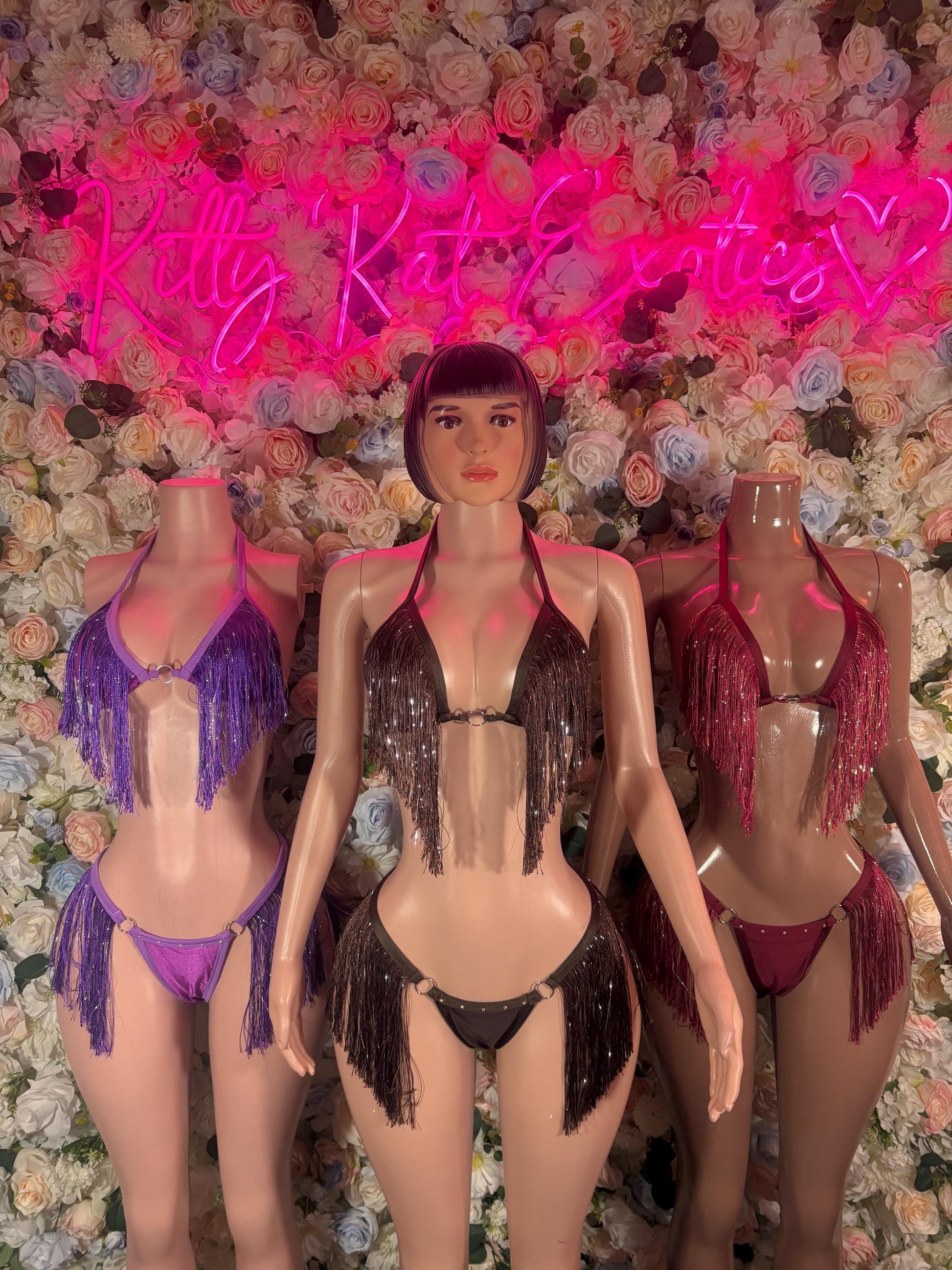 Festival Clothing Two Piece Purple Fringe Dancewear Ravewear Exoticwear